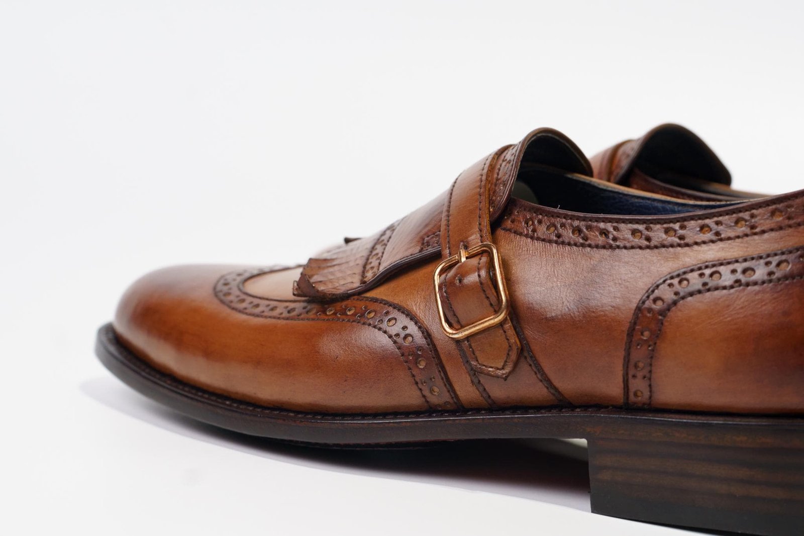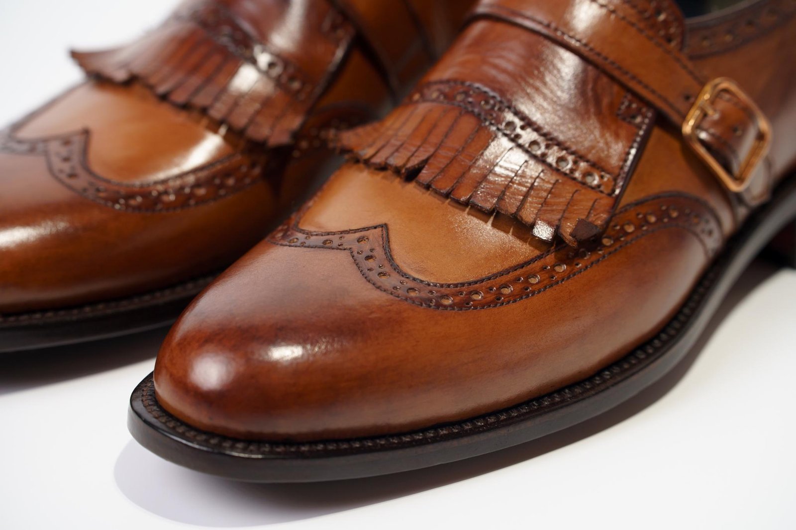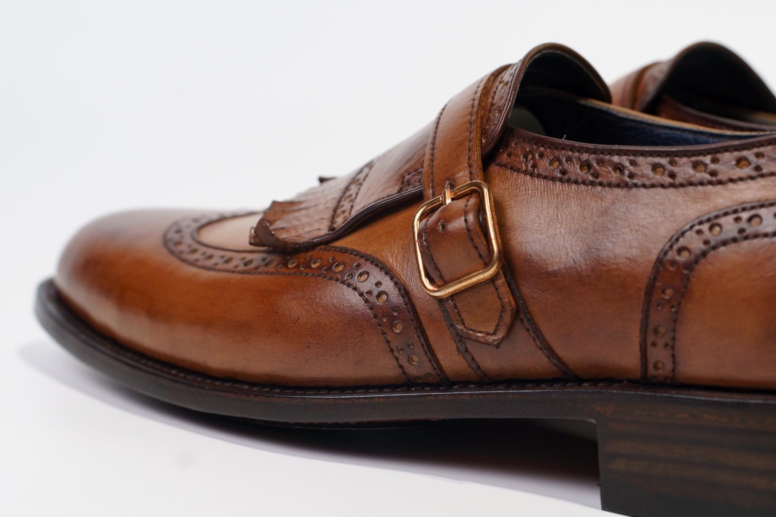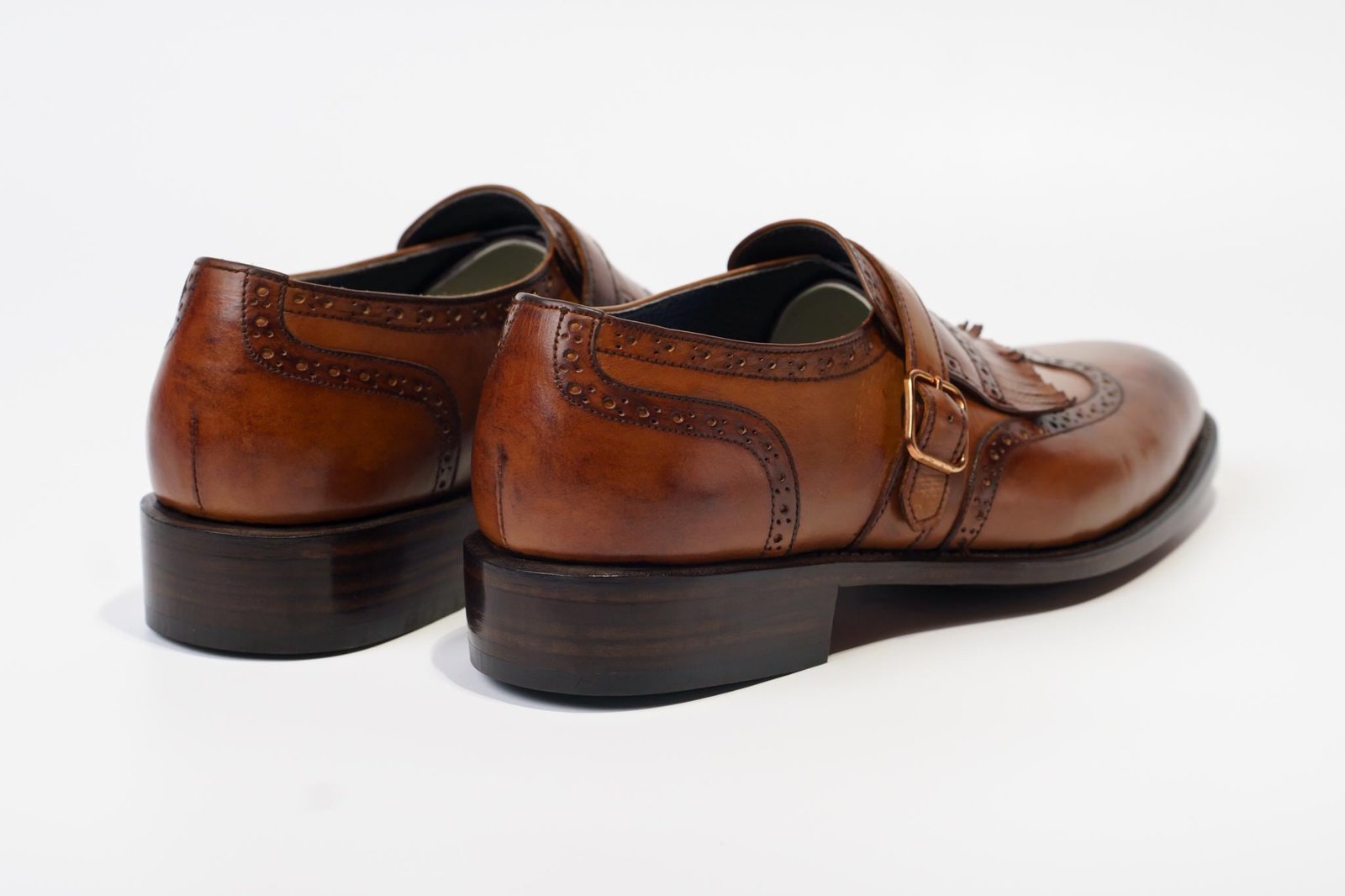 Handmade Brown Leather Fringe Loafers for Men – Wingtip Brogue Monk Strap Shoes
