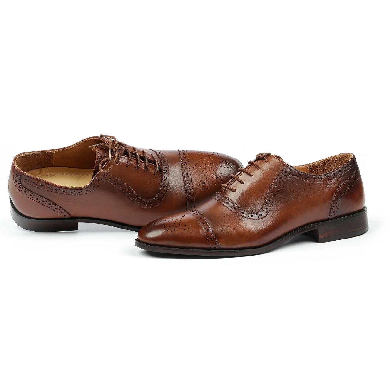 Handmade Brown Leather Oxford Brogue Shoes for Men – Classic Wingtip Formal Dress Shoes