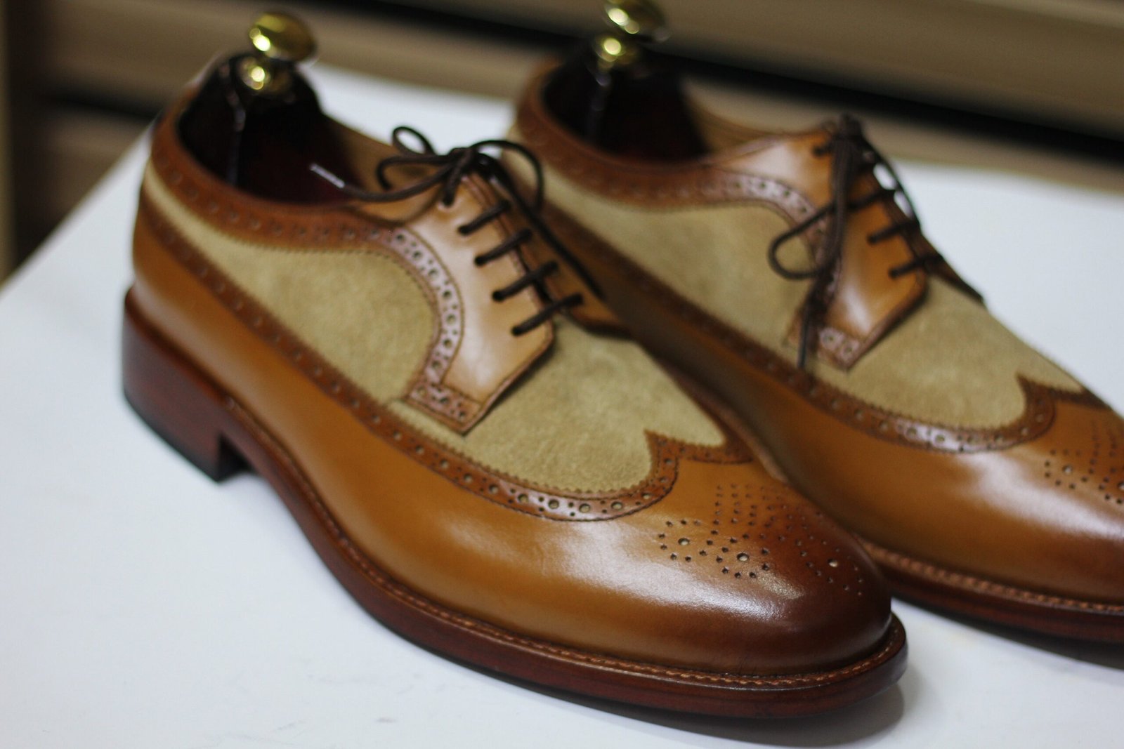 Handmade Wing Tip Brogue Oxford Two Tone Leather & Suede Shoes, Brown Shoes For Men’s