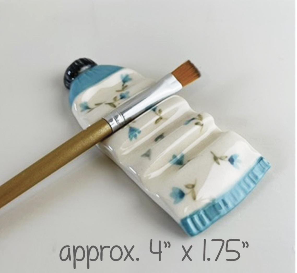Handmade Ceramic Brush Rest: Paint Tube with Flower Accents
