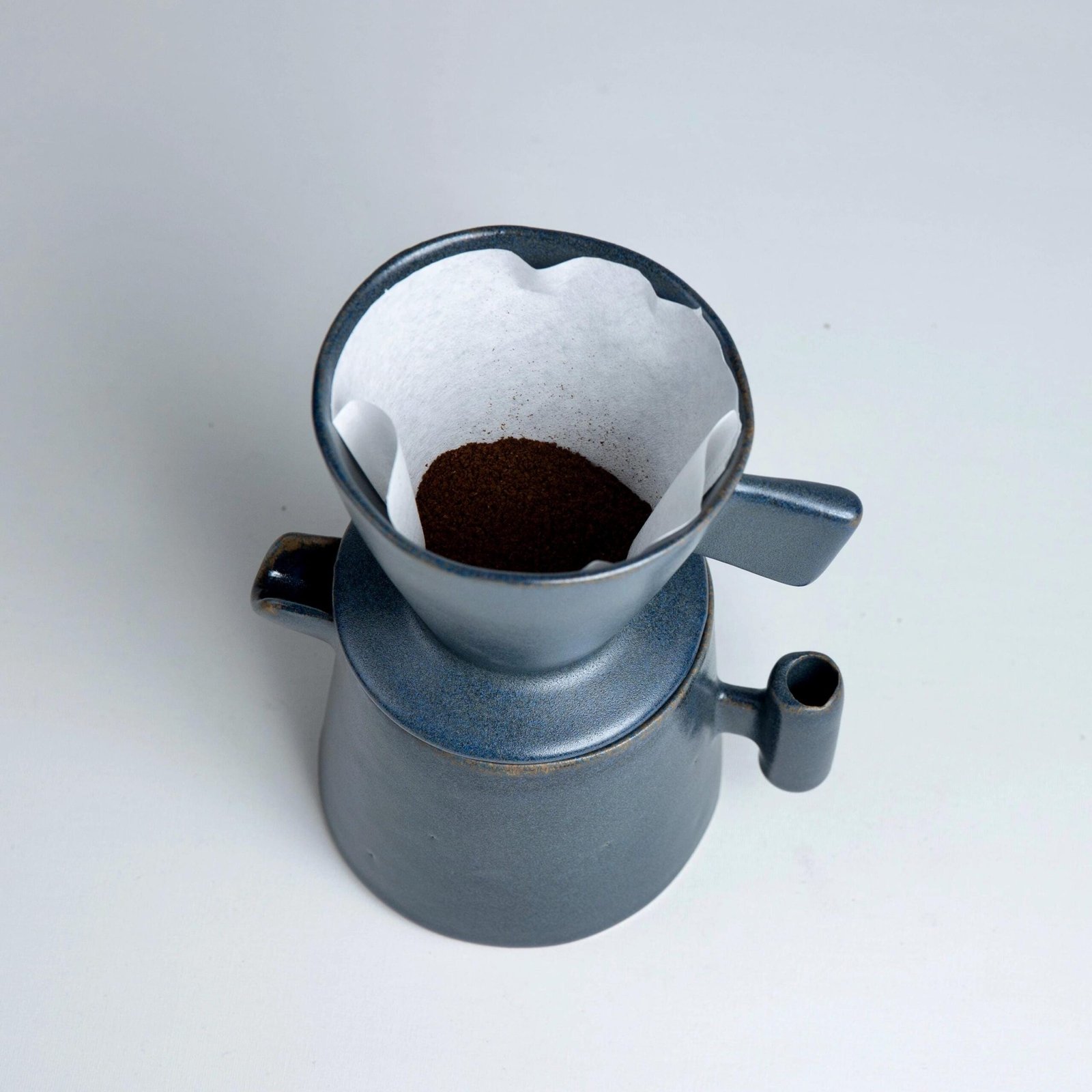 Handmade Ceramic Coffee Dripper | Pour Over Coffee Set | Stoneware Pottery | Artisan Coffee Brewer & Serving Set | Traditional Coffee Maker