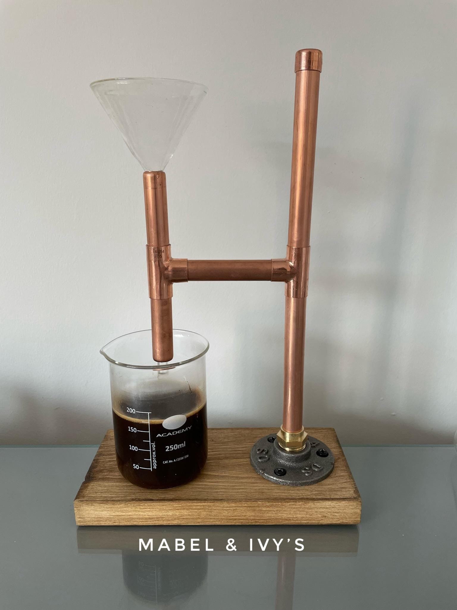 Handmade coffee dripper coffee maker copper pipe chemistry apothecary design glass funnel