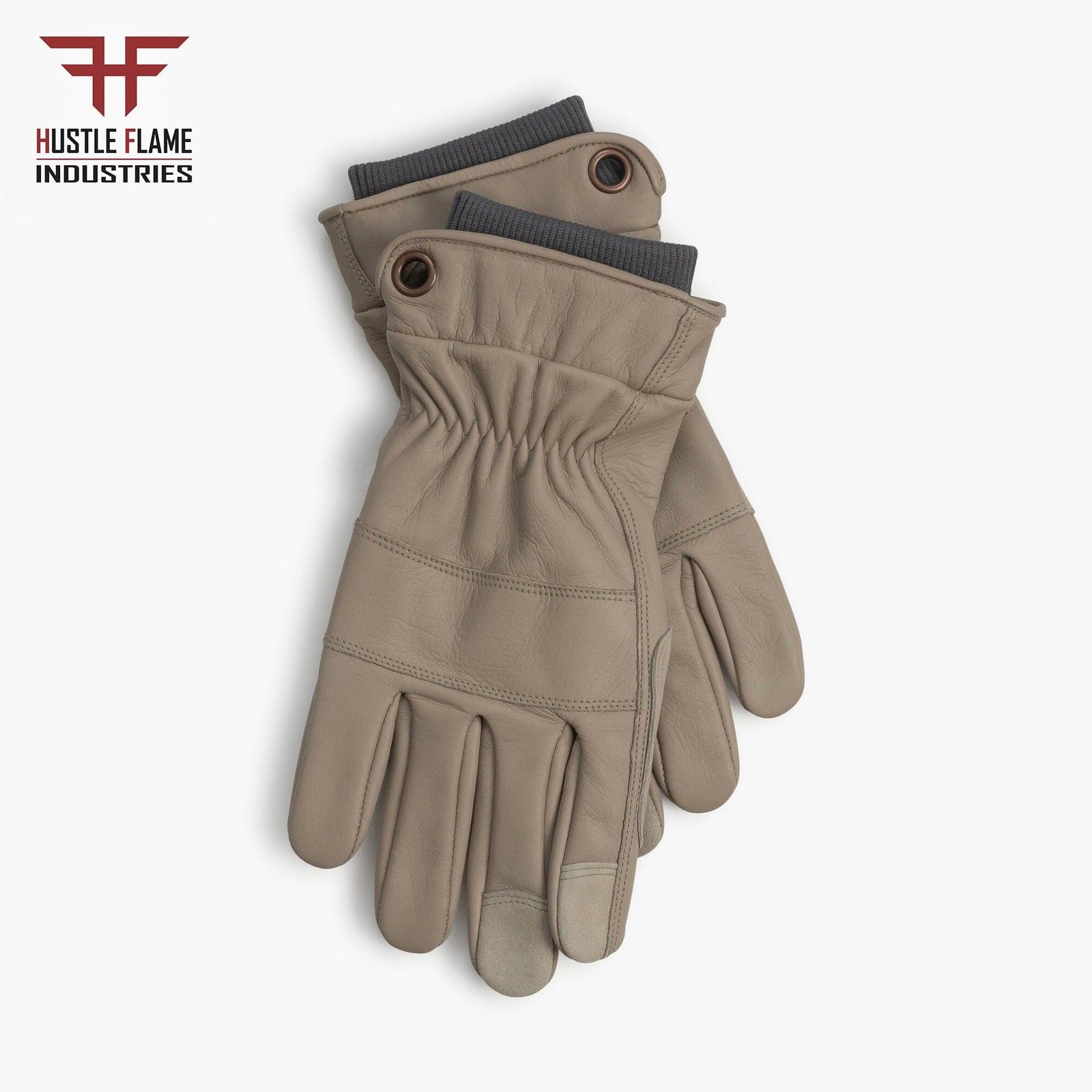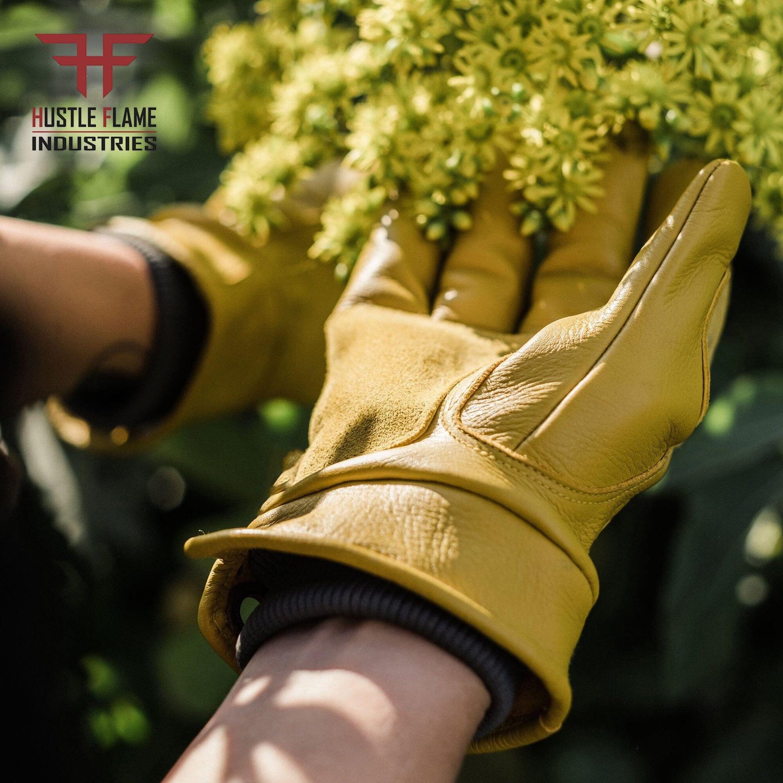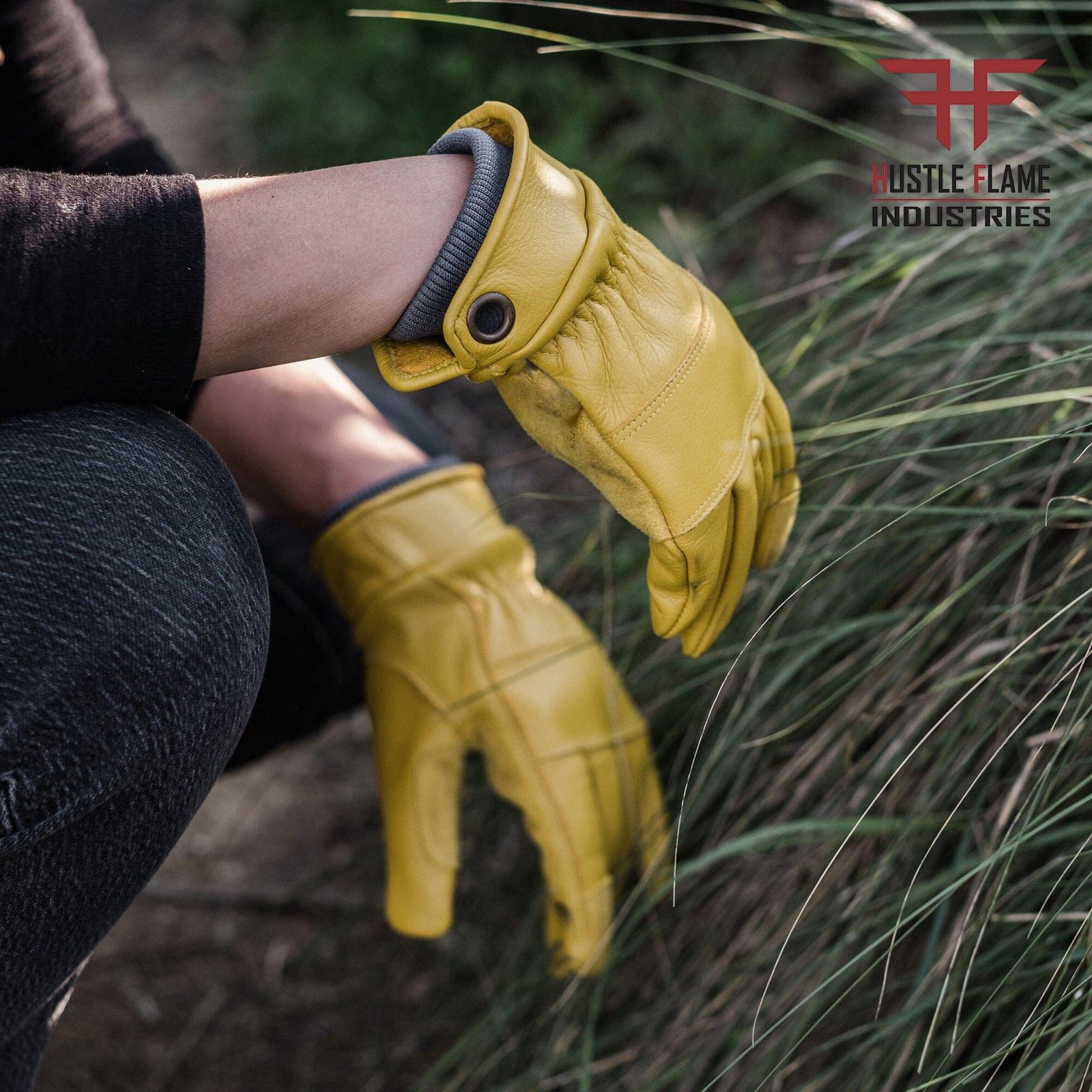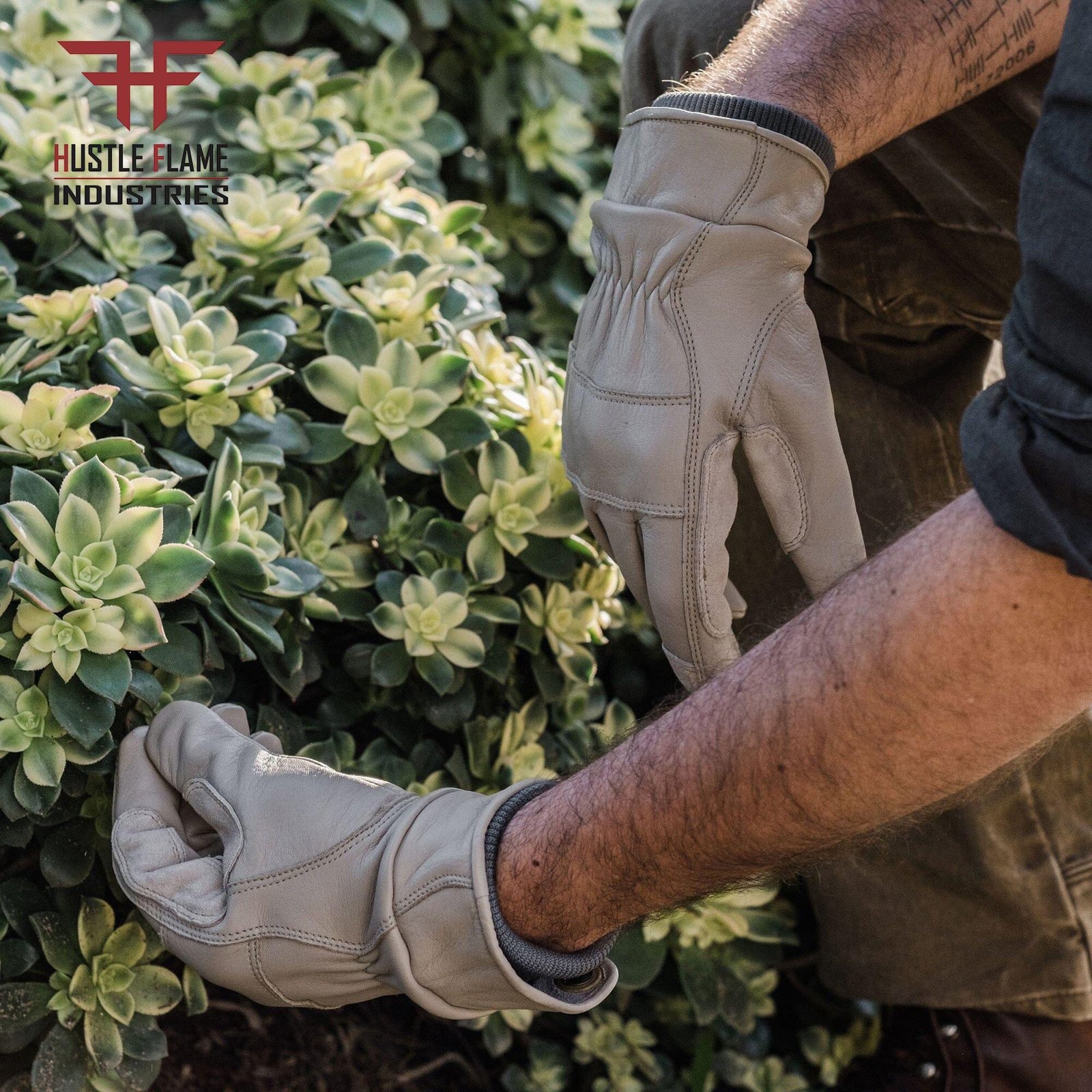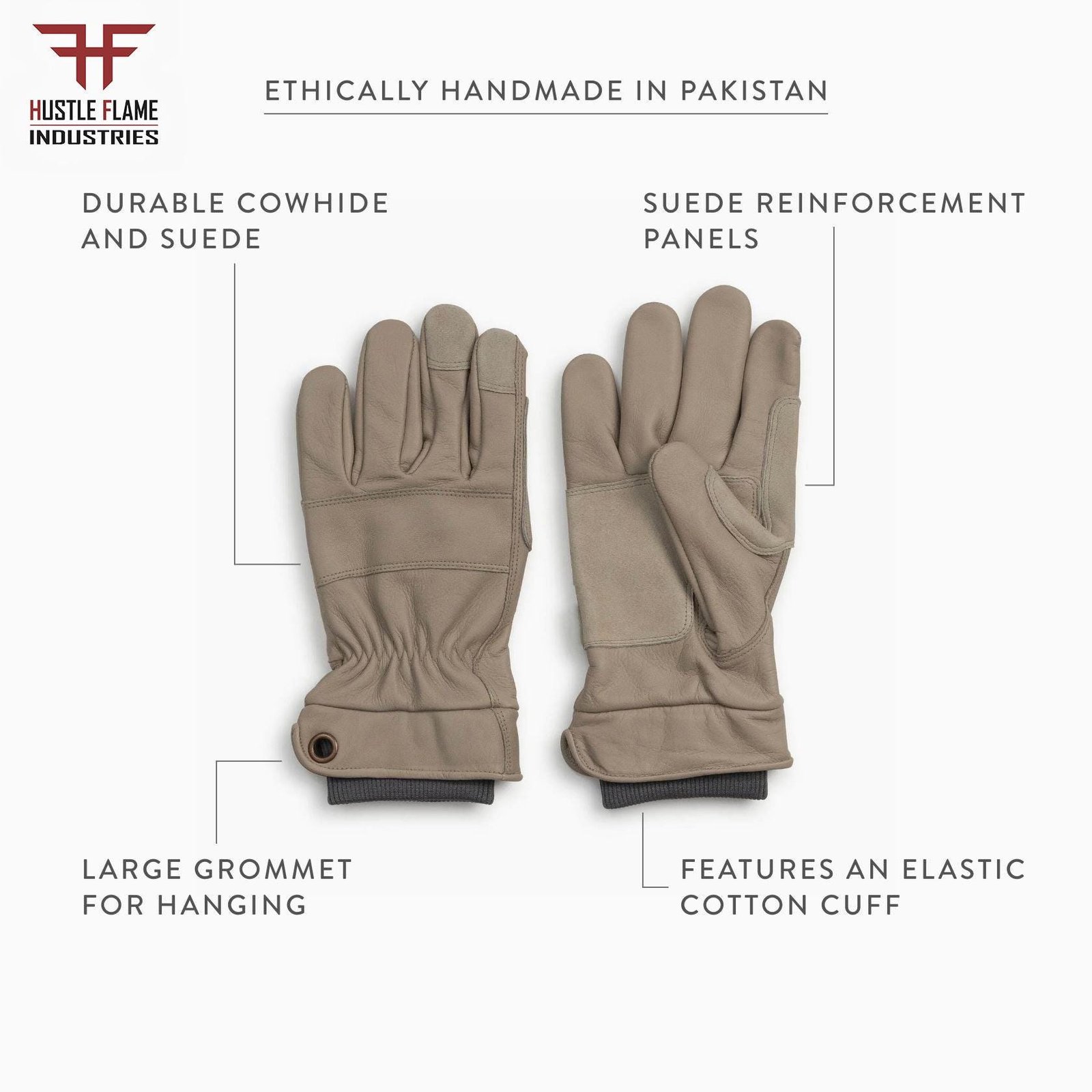 Handmade Cowhide Leather Work Gloves, Durable Utility Gloves