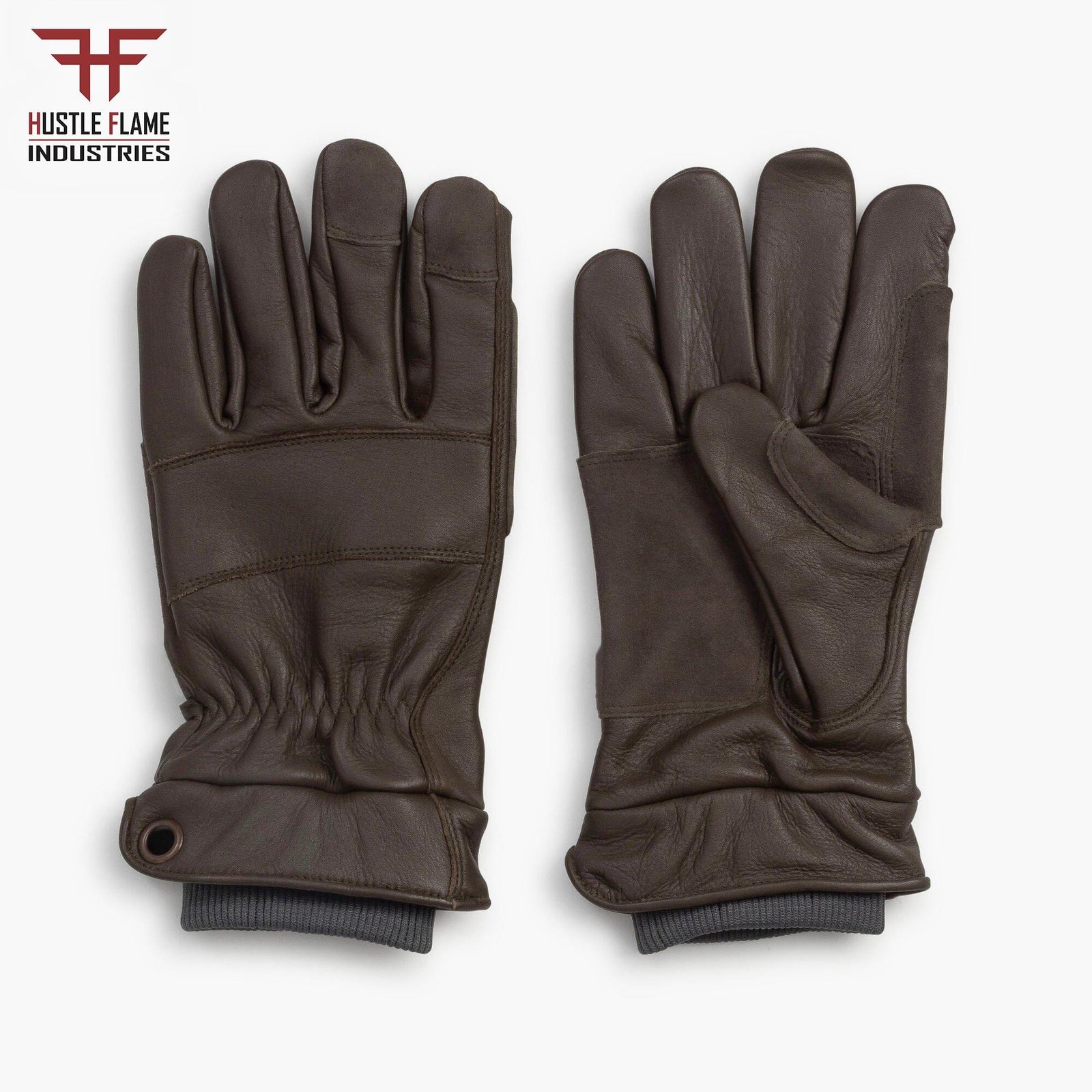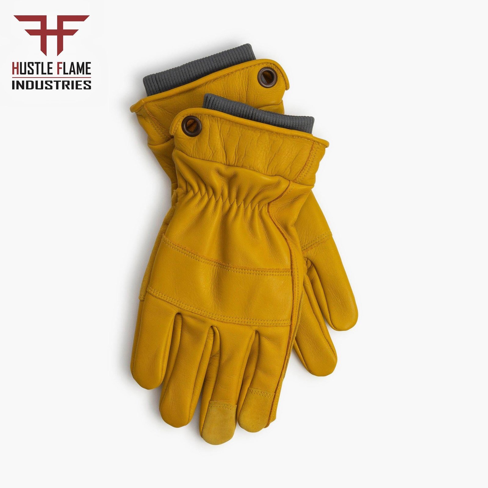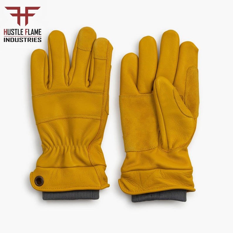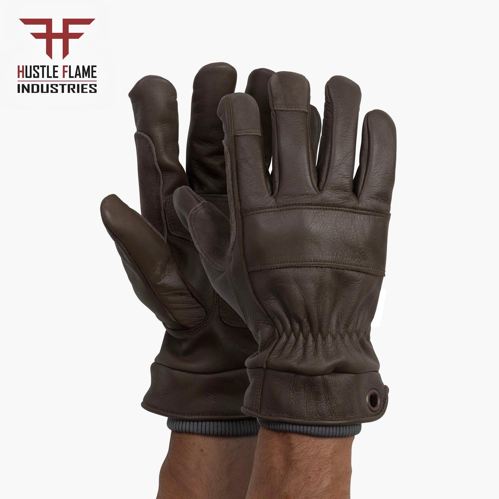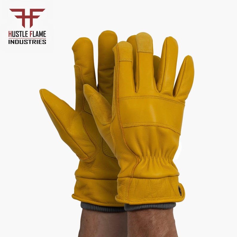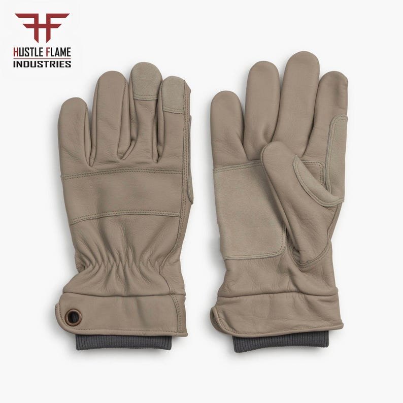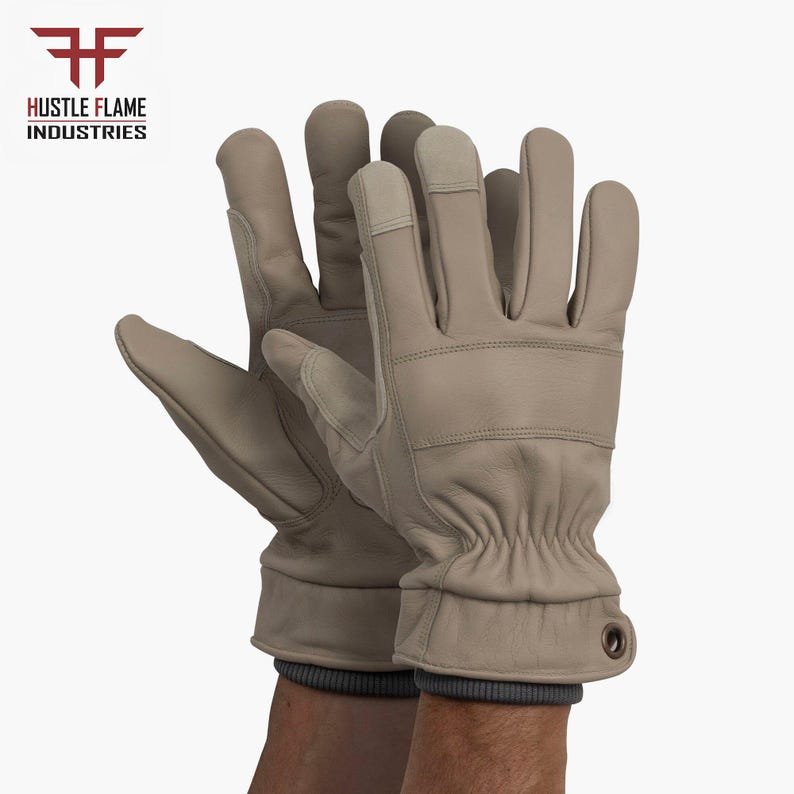 Handmade Cowhide Leather Work Gloves, Durable Utility Gloves