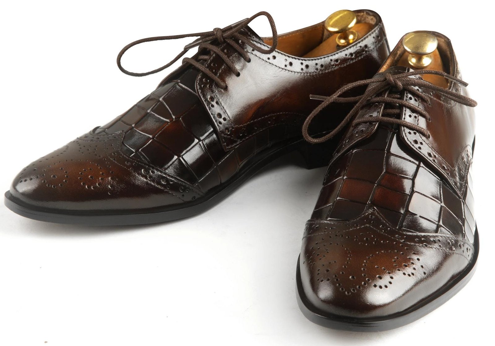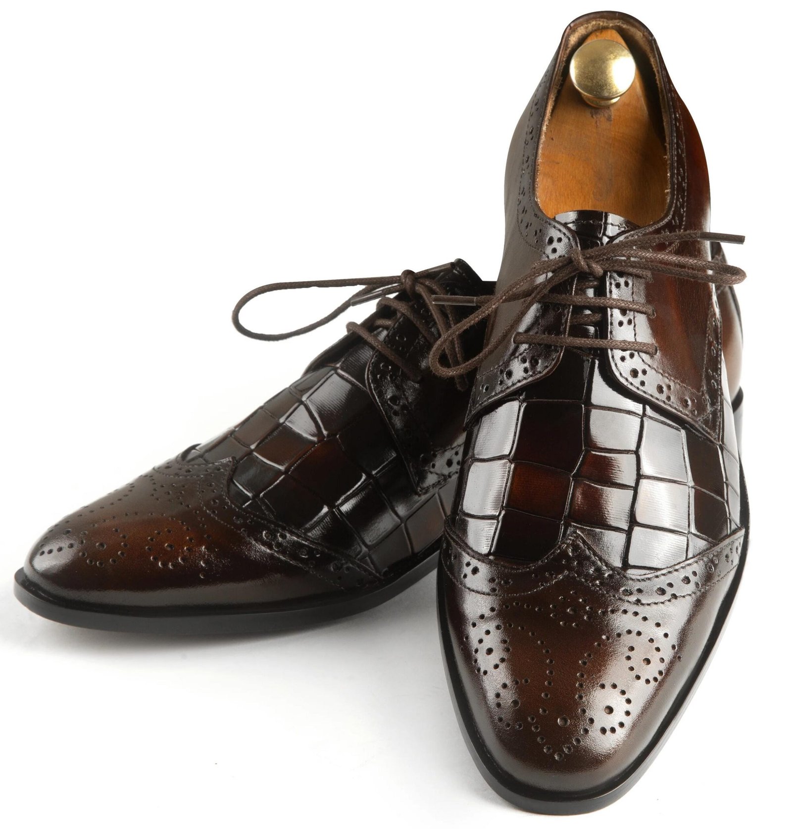 Handmade Crocodile Leather Oxfords Shoes :Luxury Brown Patina Dress Wingtip Dress