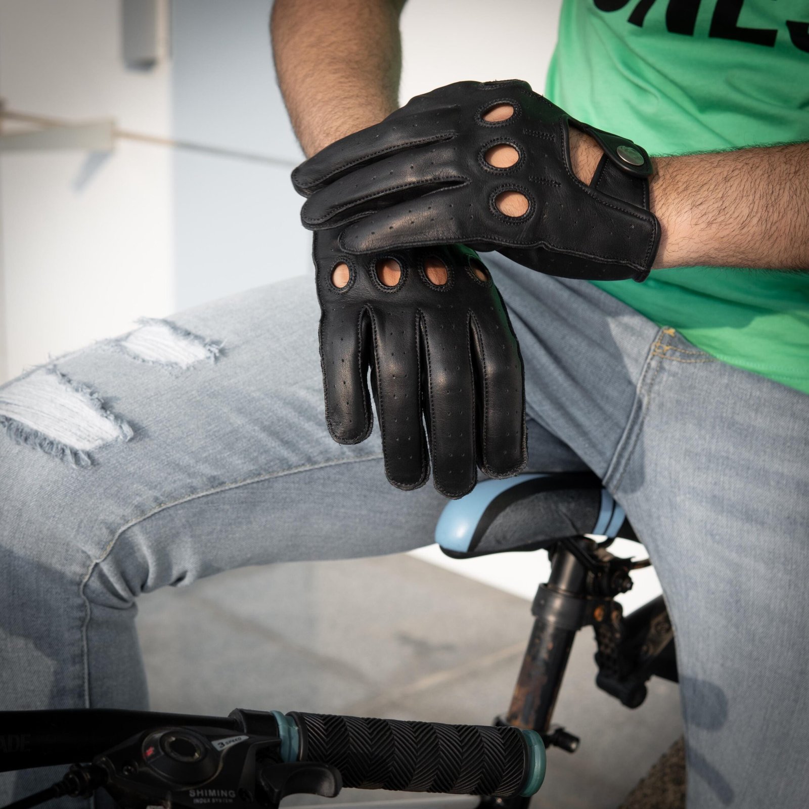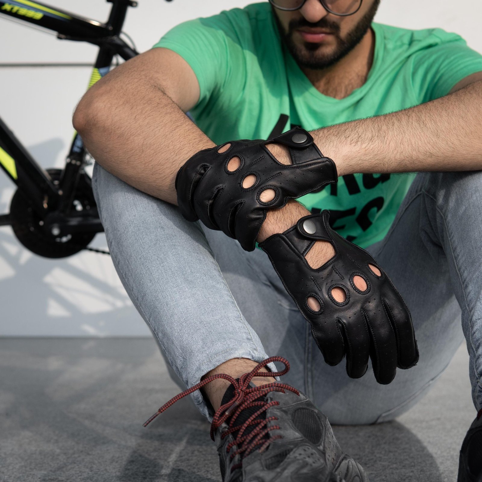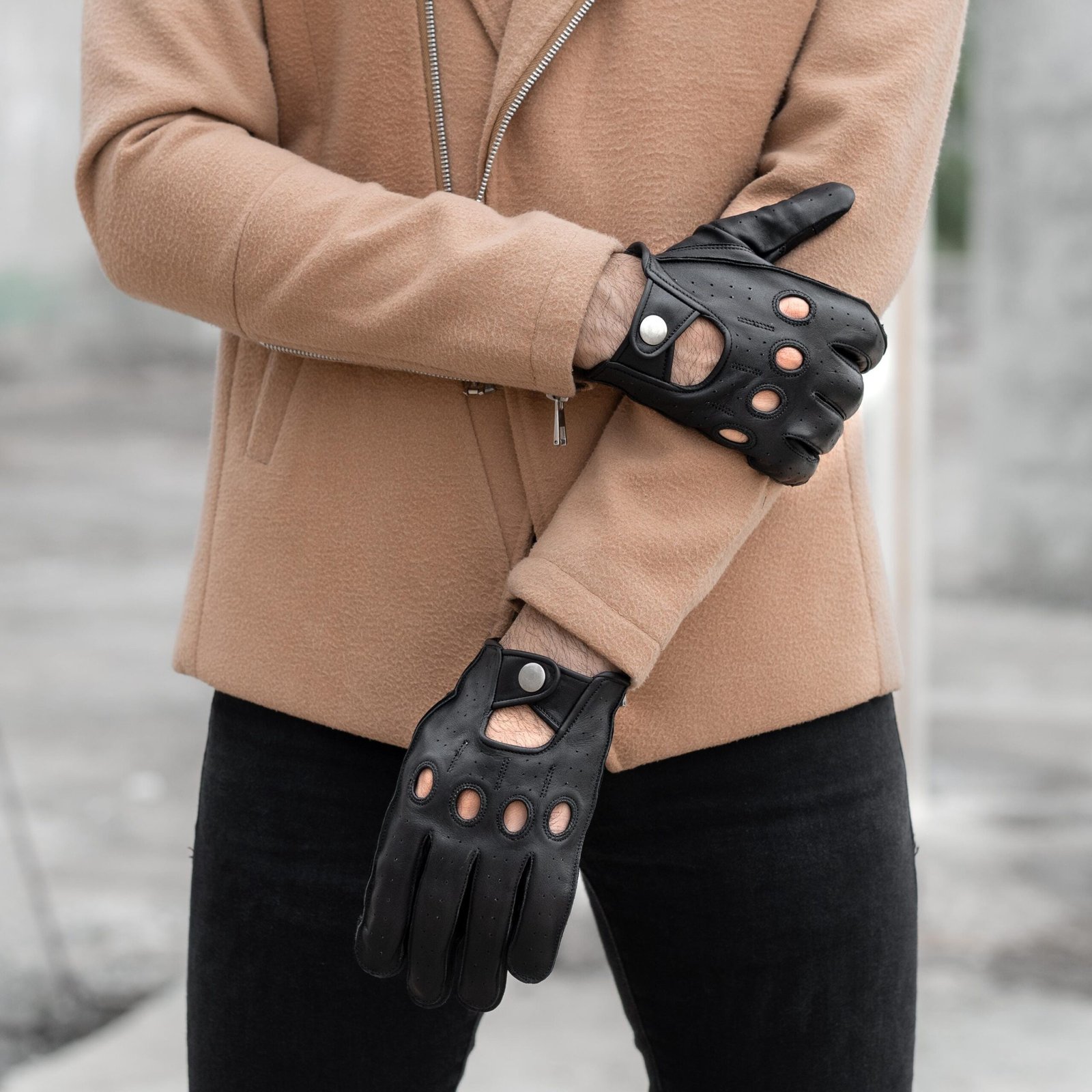 Handmade Full-Grain Leather Driving Gloves: Black Breathable Car Gloves