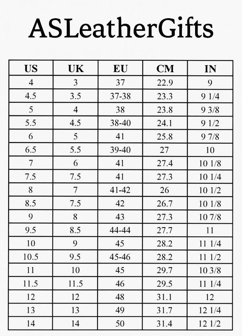 Available in all sizes. For the perfect fit, check our size chart or send your foot measurements.