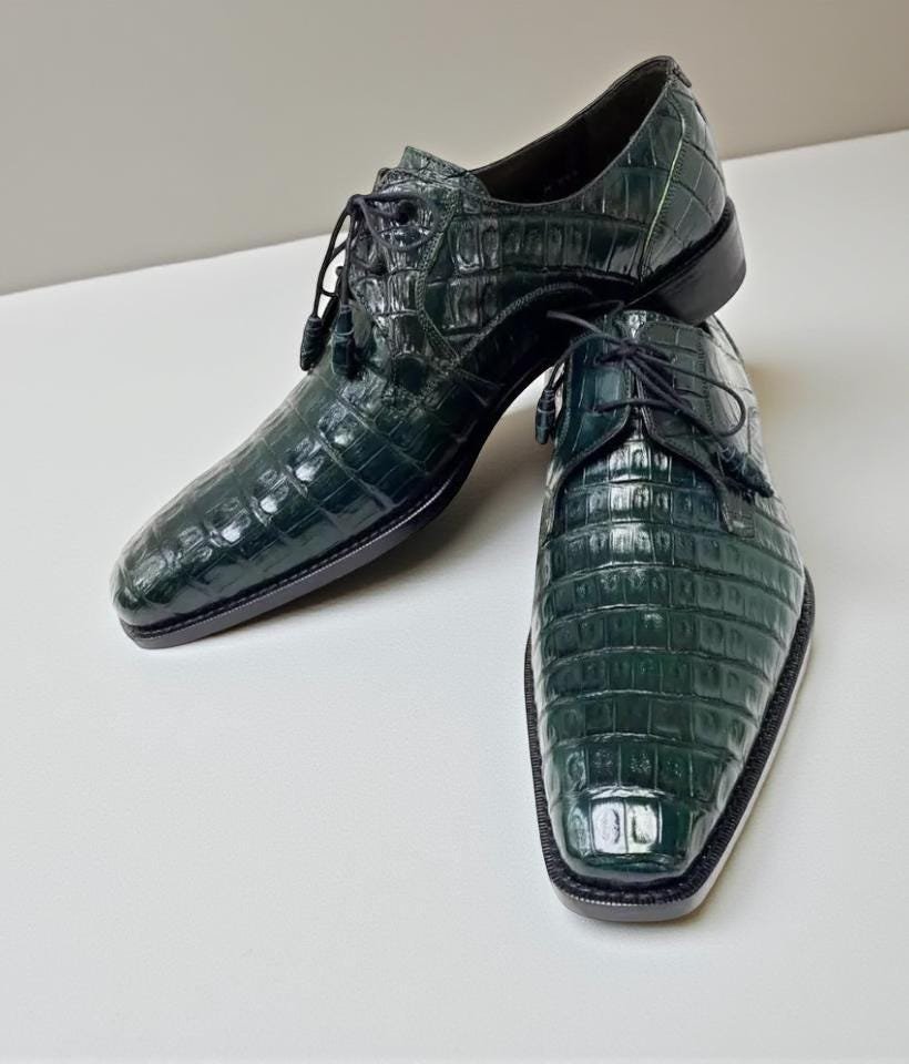 Men’s Handmade Green Alligator Print Leather Oxford Shoes | Luxury Dress Shoes for Formal & Wedding Wear