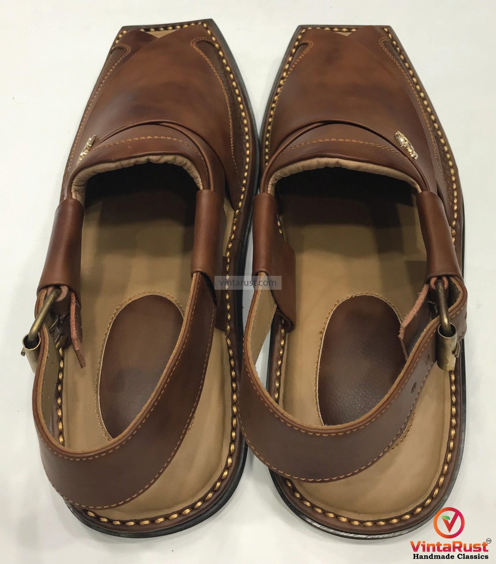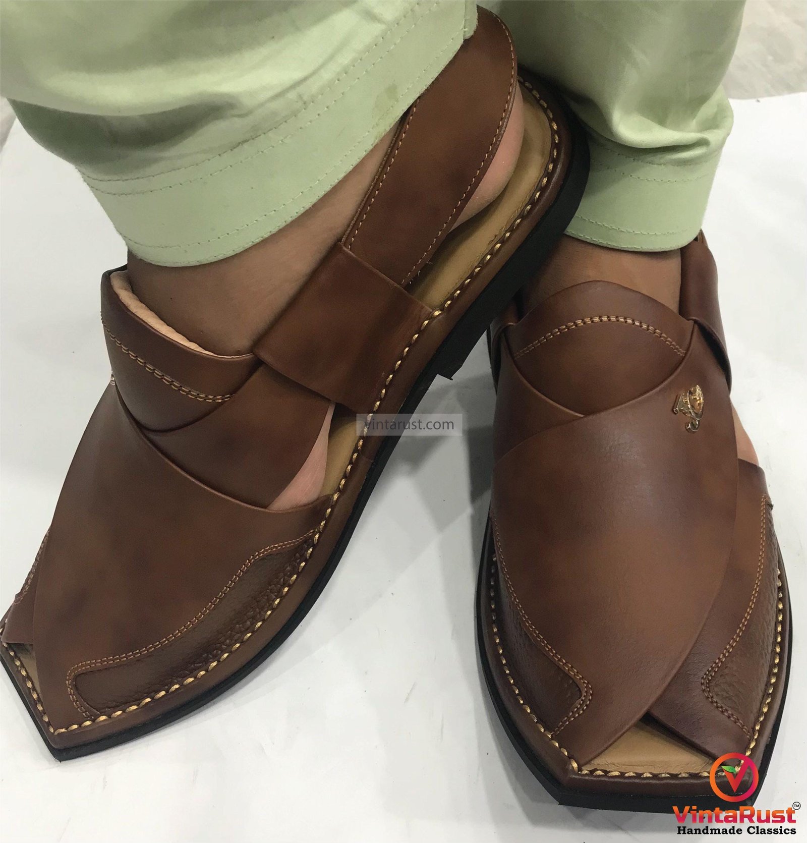 Handmade Leather Peshawari Chappal Sandal: Traditional Tan Gents Shoes