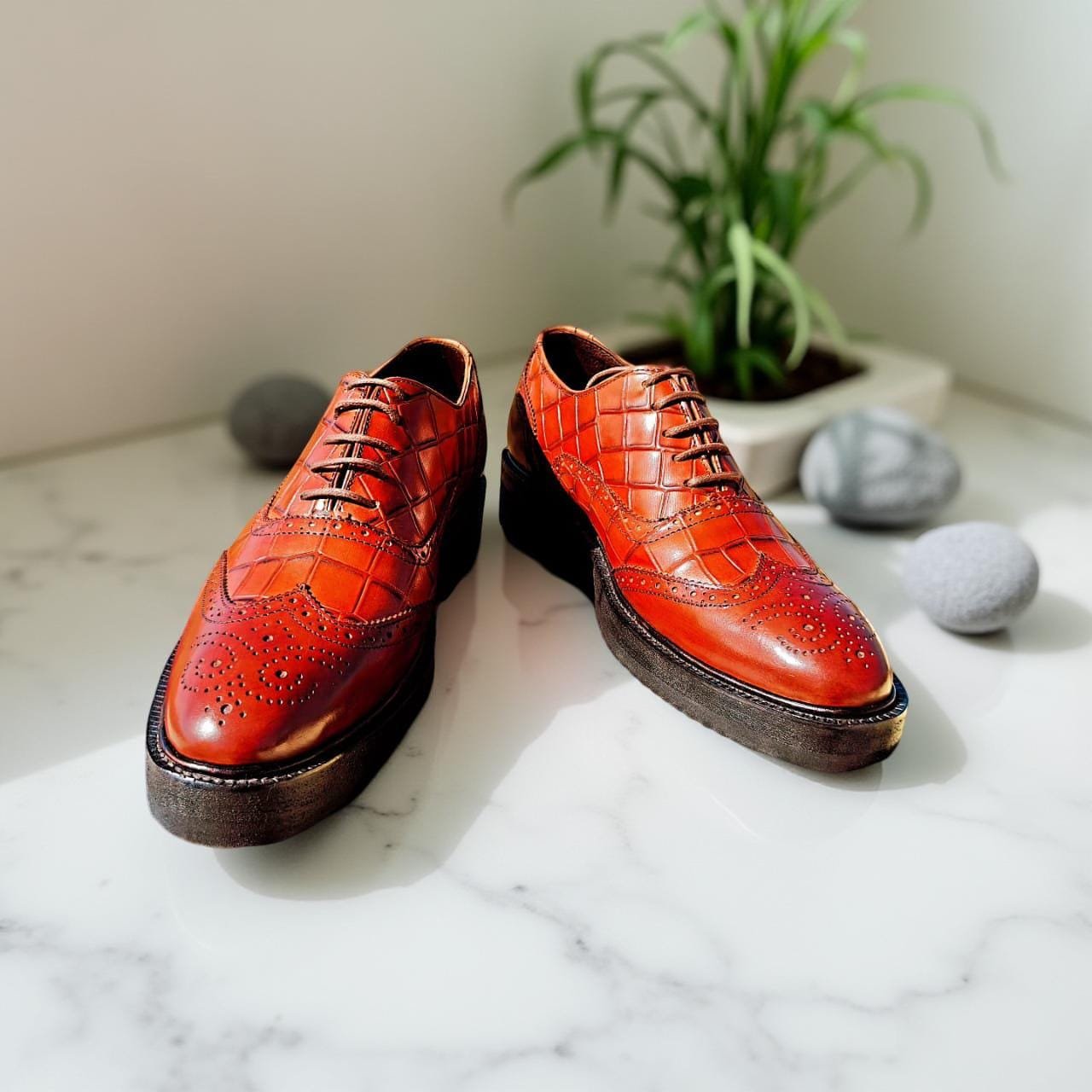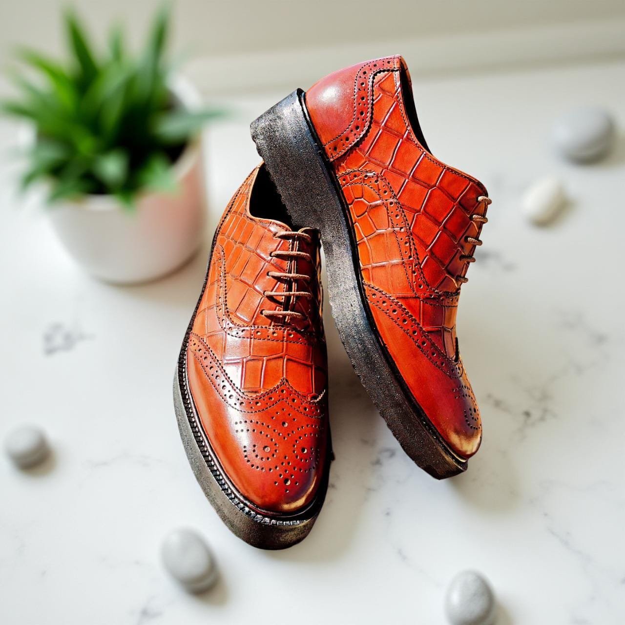 Elevate your style with these handmade leather brogues a classic wingtip design with intricate detailing and modern comfort. Whether you’re dressing for a wedding, the office, or a formal event, these shoes deliver both elegance and durability.