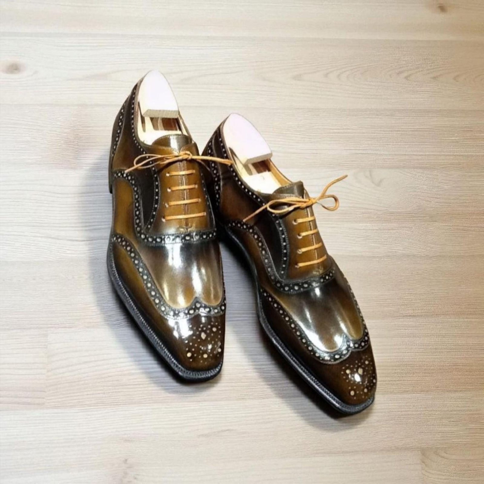 Handmade Leather Wingtip Oxford Brogue Shoes – Brown Shaded