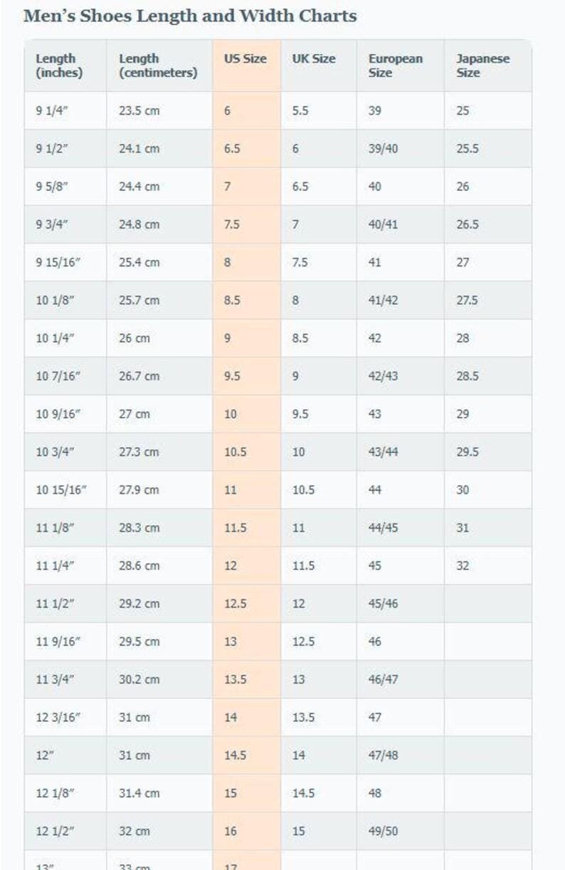 5 US men's ,6 US men's ,6.5 US men's ,7 US men's ,5.5 US men's ,7.5 US men's ,8 US men's ,8.5 US men's ,9 US men's ,9.5 US men's ,10 US men's ,10.5 US men's ,11 US men's ,11.5 US men's ,12 US men's ,12.5 US men's ,13 US men's ,13.5 US men's ,14 US men's ,14.5 US men's ,15 US men's ,15.5 US men's ,16 US men's |