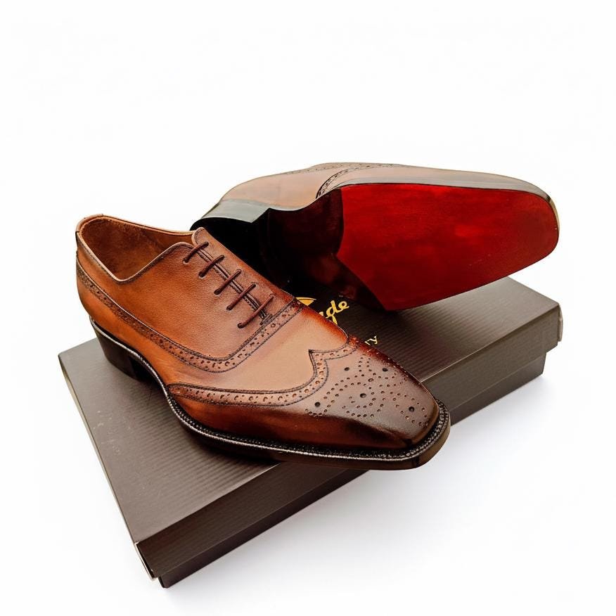 Handmade Leather Wingtip Oxford Brogue Shoes: Maroon Shaded Price range: $116.00 through $209.00
