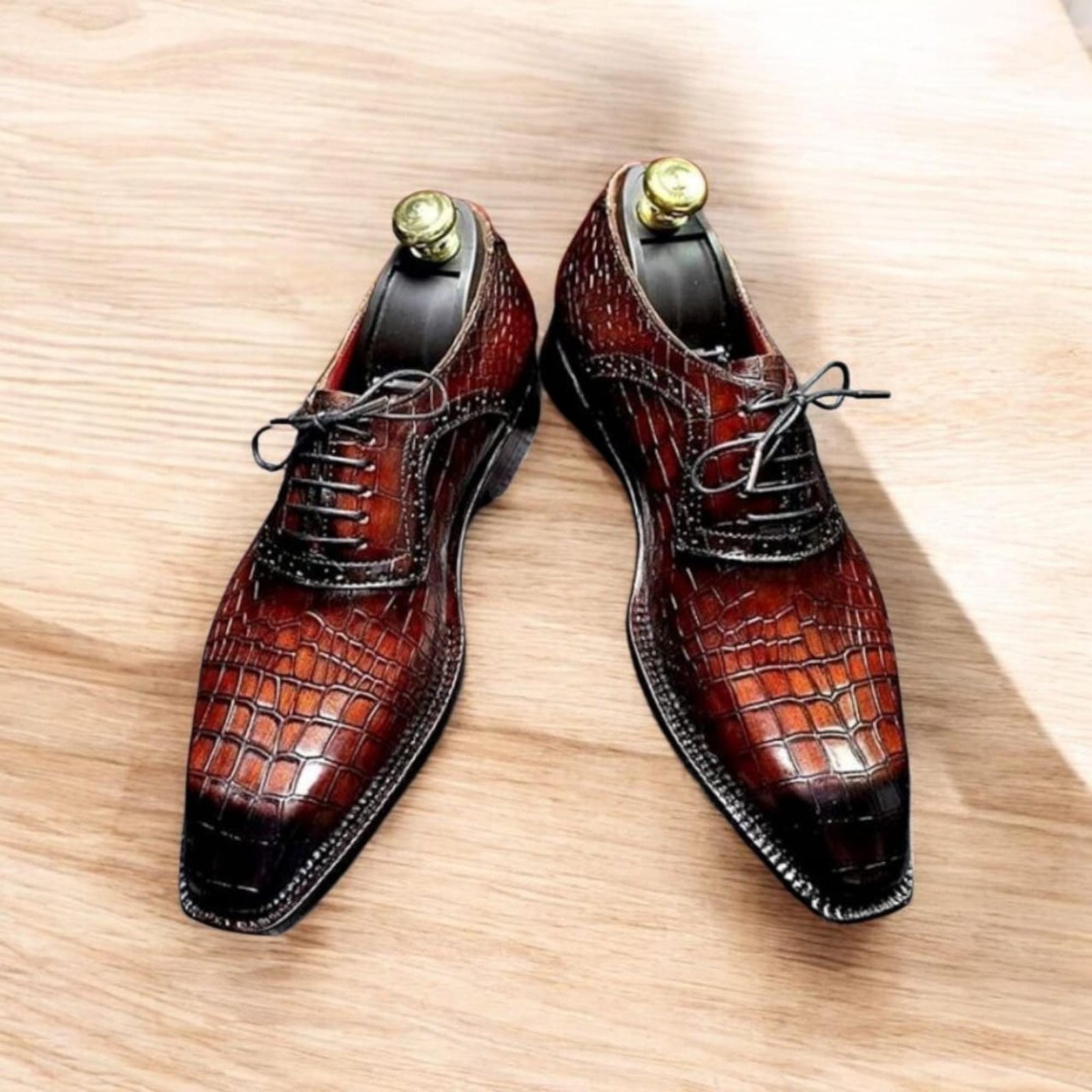 Handmade Maroon Crocodile Print Leather Lace Up Whole Cut Oxford Brogue Shoes