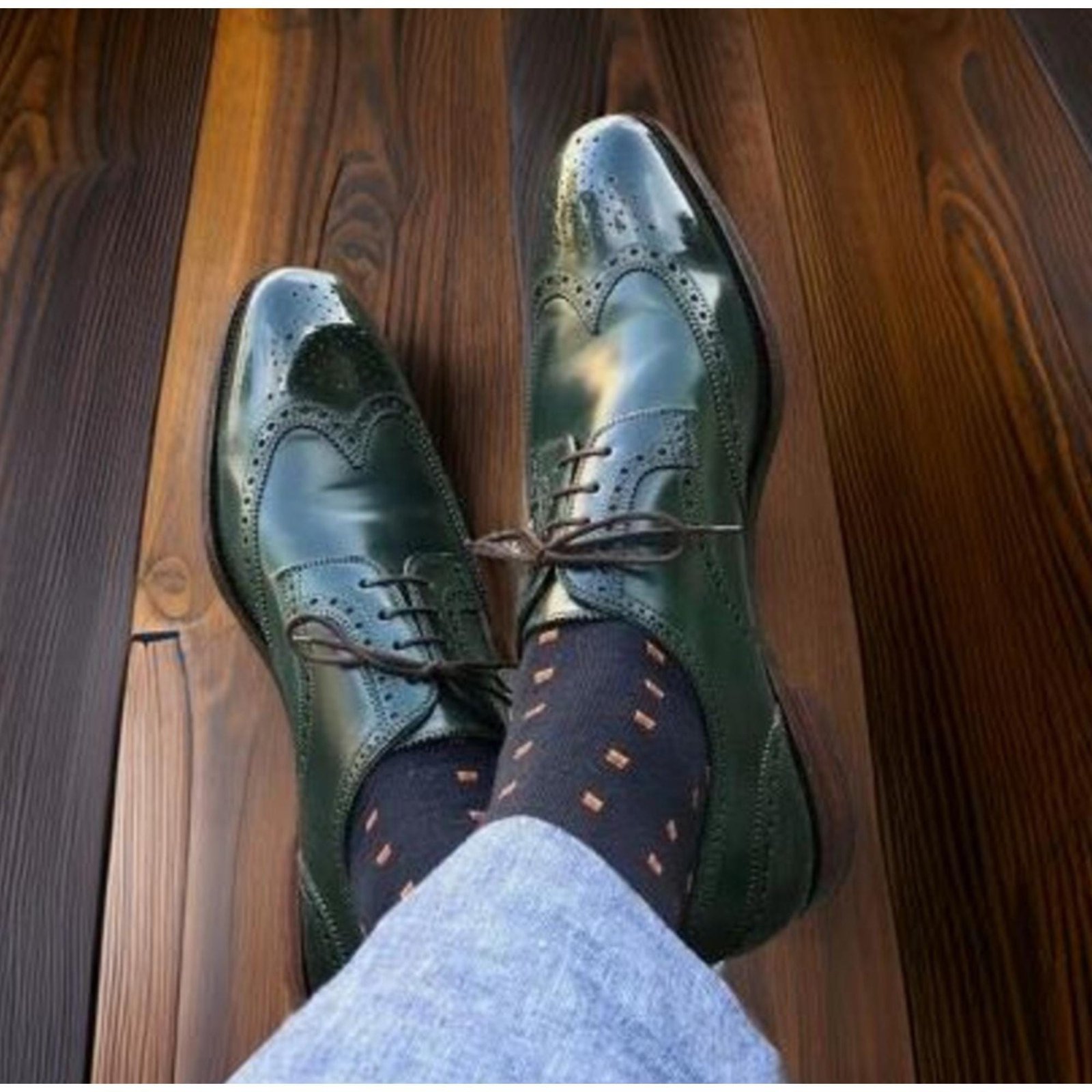 Title: New Stylish Men’s Handmade Green Shaded Leather Lace Up Shoes, Oxford Men’s Wingtip Formal Dress Wedding Party Wear Derby Brogue Shoes