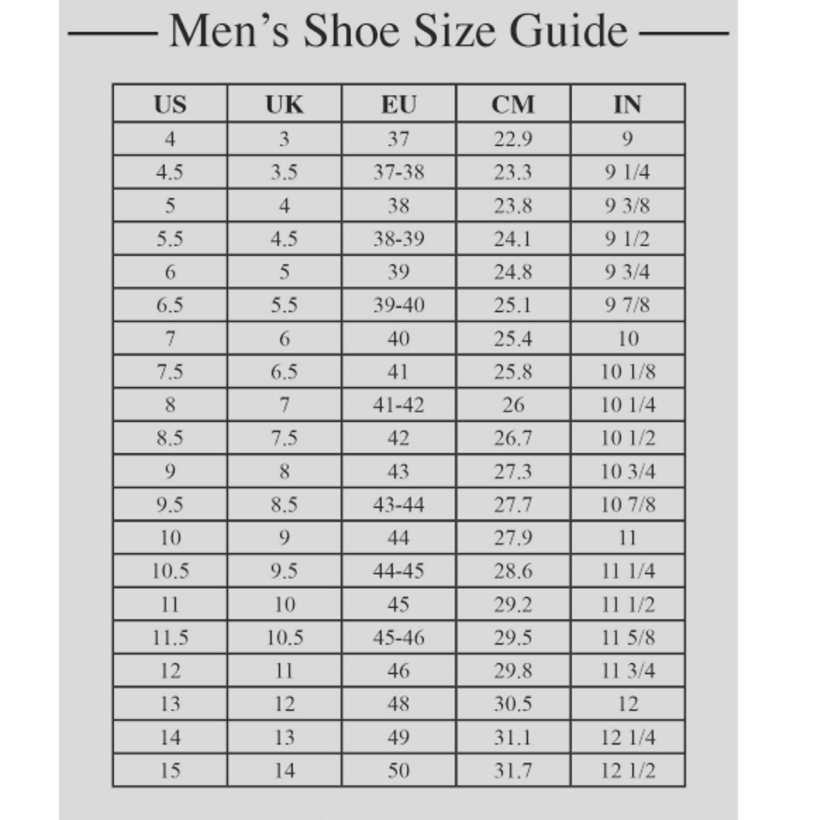 5 US men's ,5.5 US men's ,6 US men's ,6.5 US men's ,7 US men's ,7.5 US men's ,8 US men's ,8.5 US men's ,9 US men's ,9.5 US men's ,10 US men's ,10.5 US men's ,11 US men's ,11.5 US men's ,12 US men's ,12.5 US men's ,13 US men's ,13.5 US men's ,14 US men's ,14.5 US men's ,15 US men's ,15.5 US men's ,16 US men's |