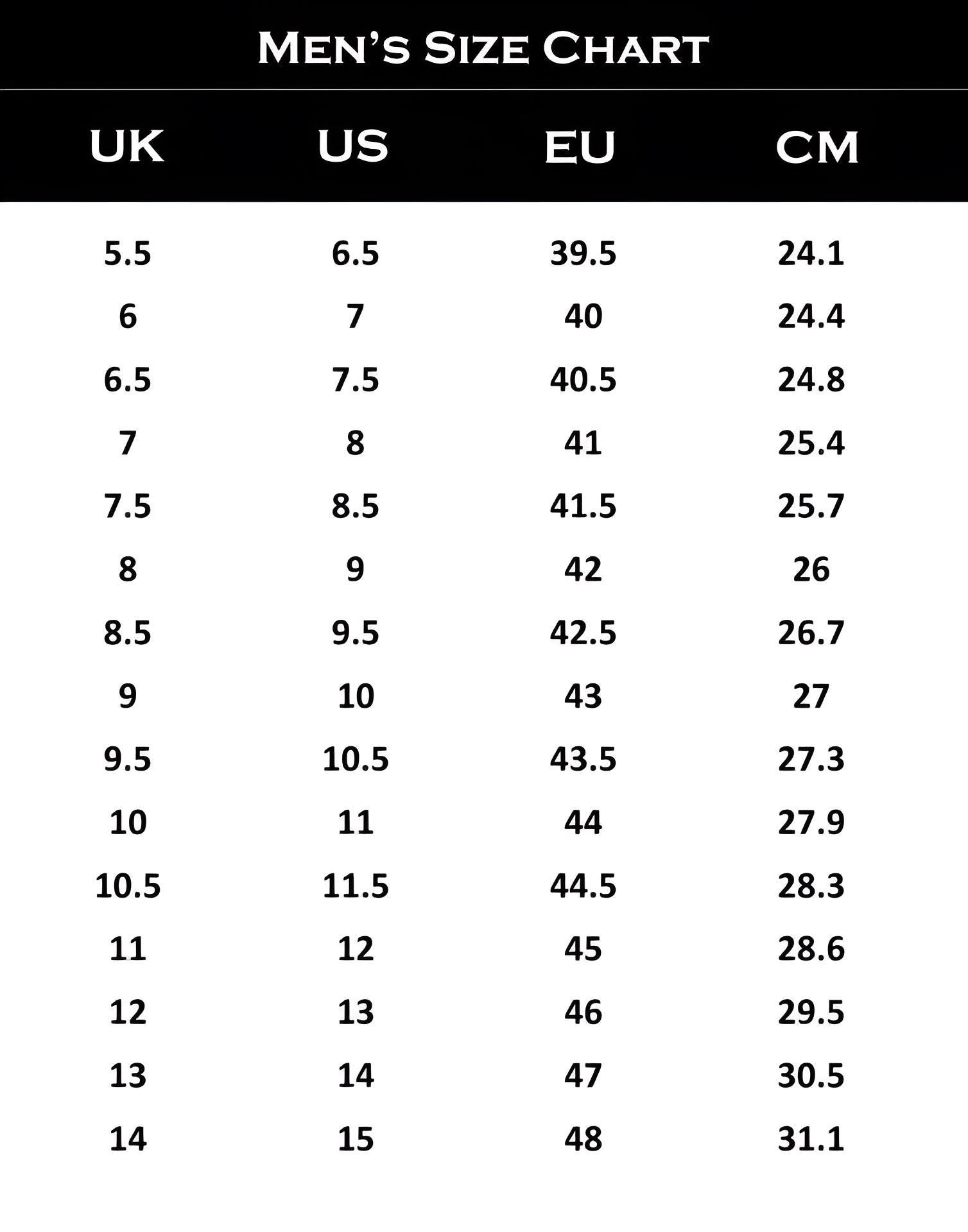 5 US men's ,5.5 US men's ,6 US men's ,6.5 US men's ,7 US men's ,7.5 US men's ,8 US men's ,8.5 US men's ,9 US men's ,9.5 US men's ,10 US men's ,10.5 US men's ,11 US men's ,11.5 US men's ,12 US men's ,12.5 US men's ,13 US men's ,13.5 US men's ,14 US men's ,14.5 US men's ,15 US men's ,15.5 US men's ,16 US men's ,Custom Size US men's US men's |