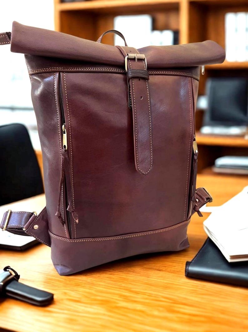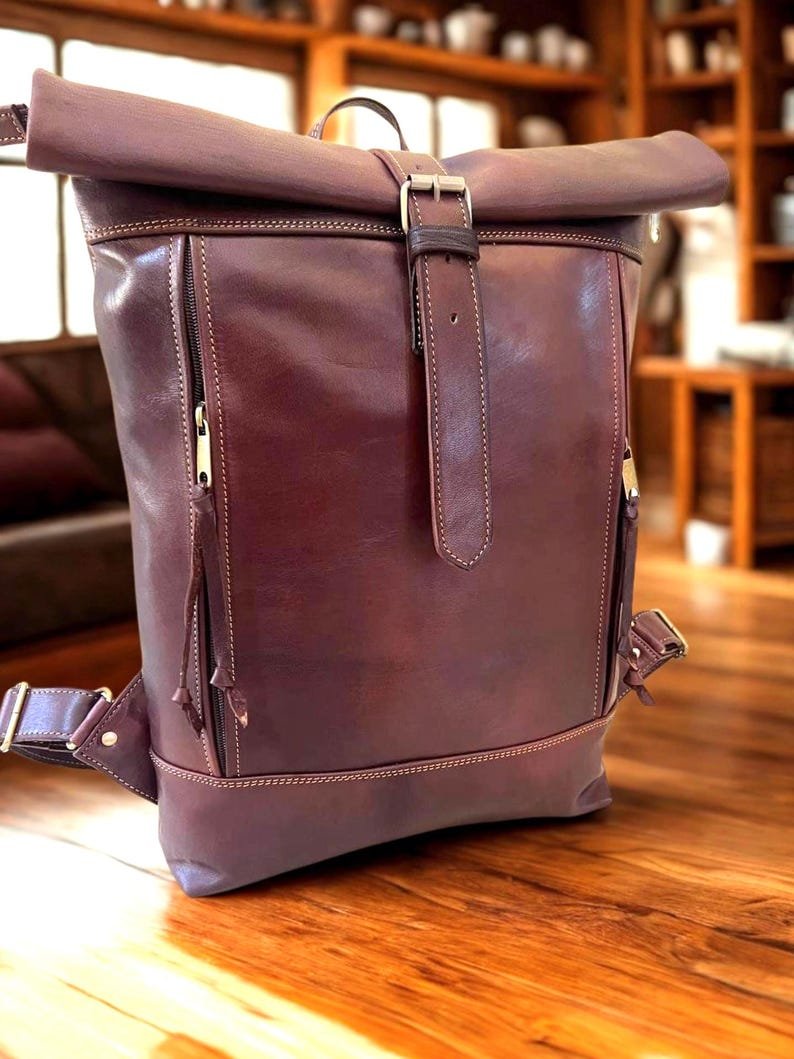 1 review for Handmade Moroccan Leather Roll Top Backpack: Minimalist 16&quote; Laptop Bag