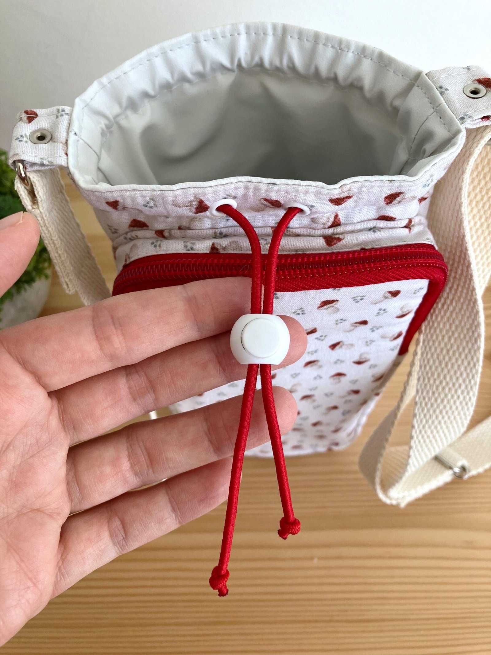 Handmade Mushroom Water Bottle Cooler Bag with Crossbody Strap