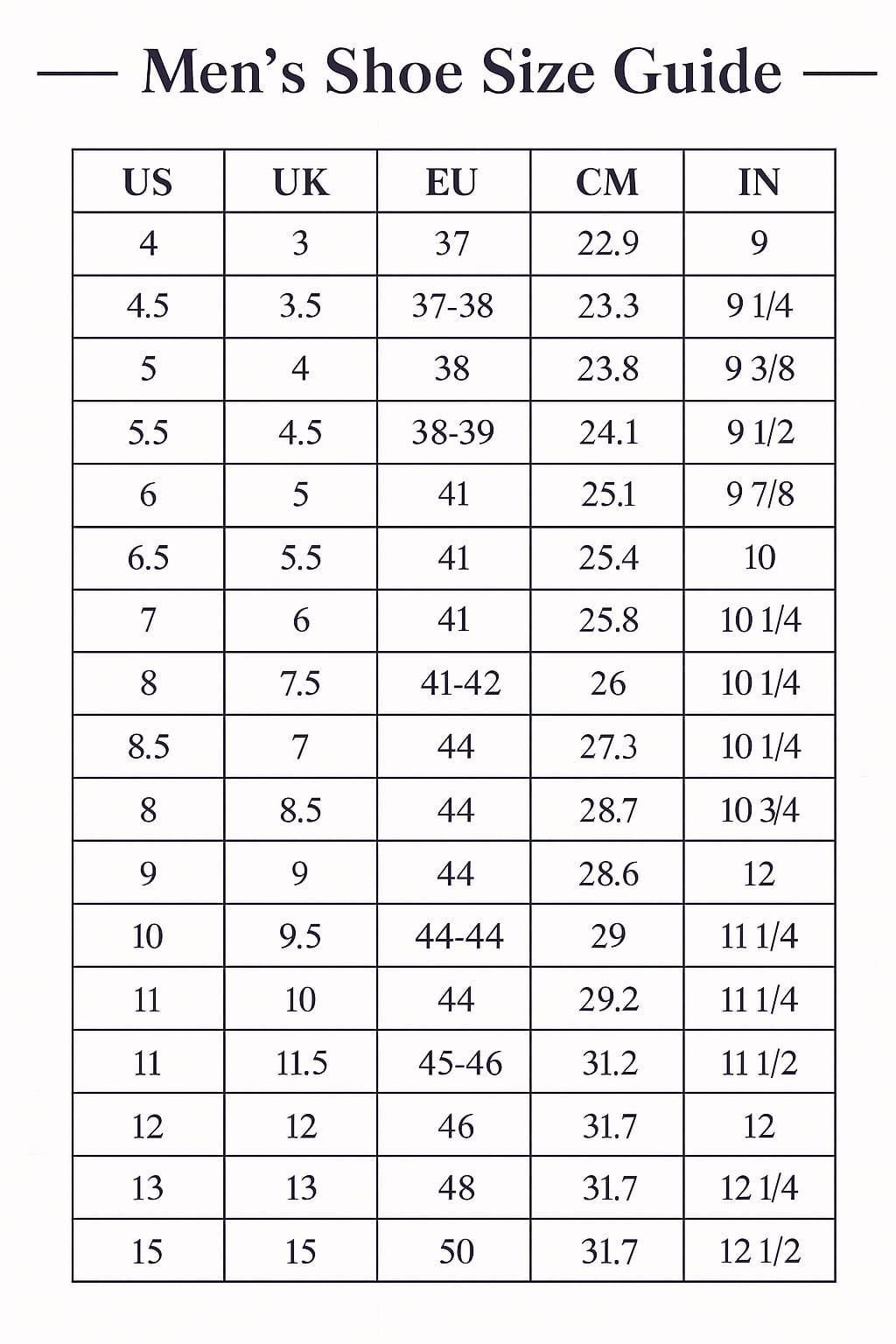 5 US men's ,5.5 US men's ,6 US men's ,6.5 US men's ,7 US men's ,7.5 US men's ,8 US men's ,8.5 US men's ,9 US men's ,9.5 US men's ,10 US men's ,10.5 US men's ,11 US men's ,11.5 US men's ,12 US men's ,12.5 US men's ,13 US men's ,13.5 US men's ,14 US men's ,14.5 US men's ,15 US men's ,15.5 US men's ,16 US men's |