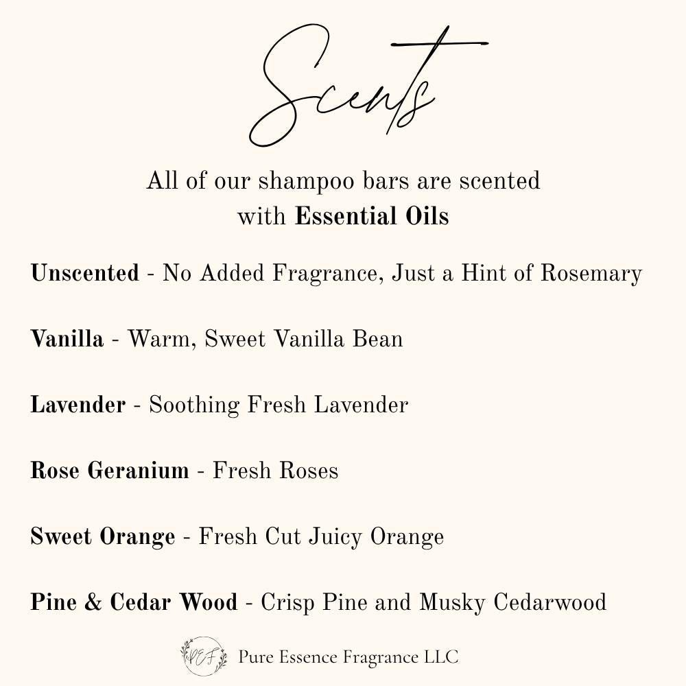 Rose Geranium ,Lavender ,Vanilla ,Unscented ,Sweet Orange ,Pine + Cedarwood ,Jasmine +Honeysuckle ,Eucalyptus+Spearmint ,Patchouli+Sandalwood ,Sage + Eucalyptus ,Orange Creamsicle ,Cinnamon + Vanilla |