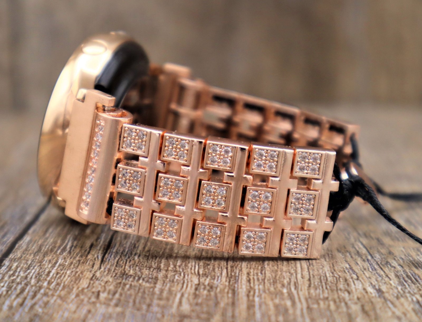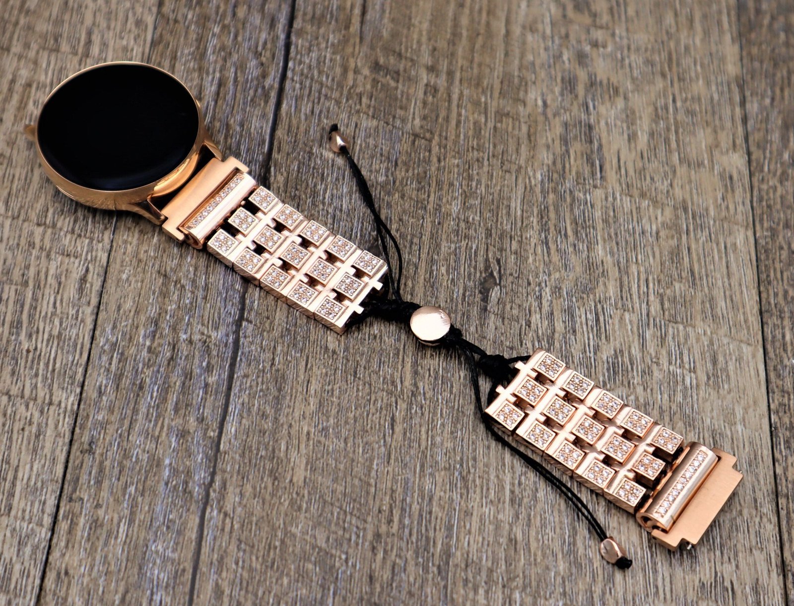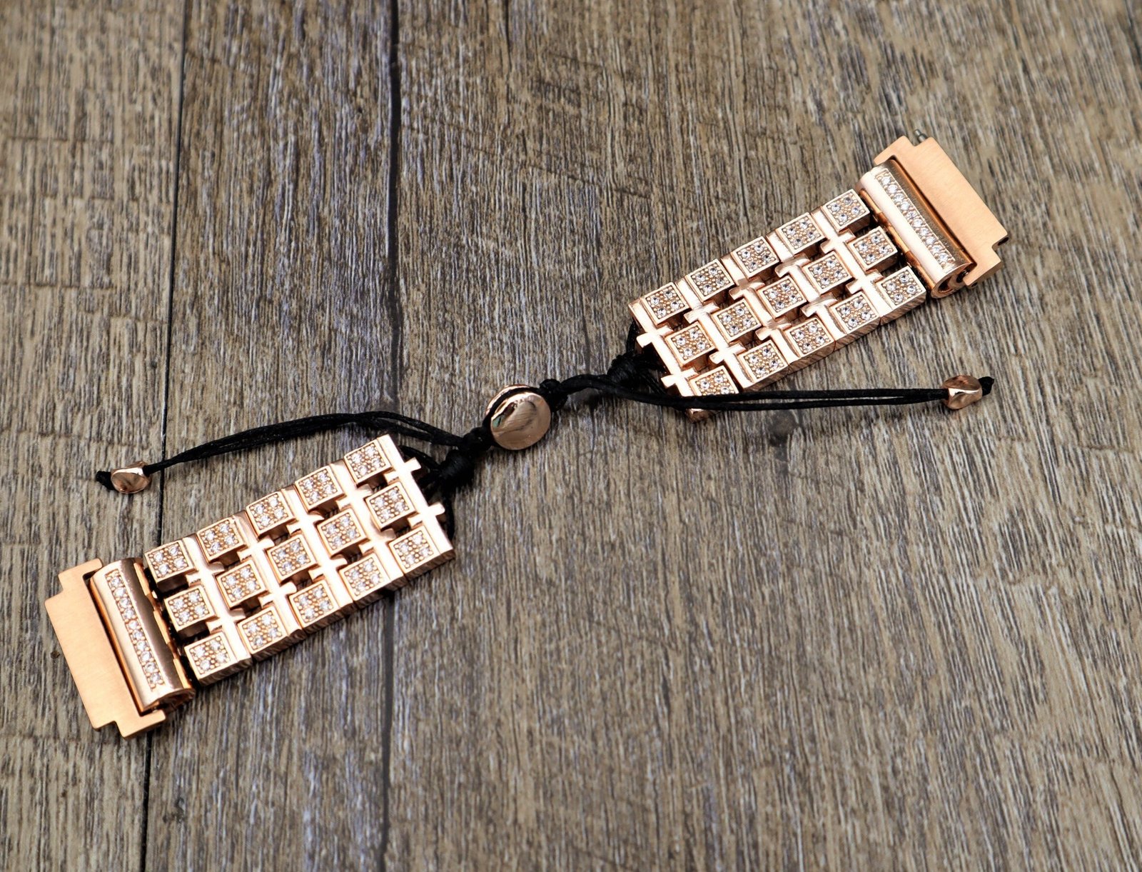 Handmade Rose Gold Apple Samsung Fitbit Rhinestone Jewelry w Waxed Cord Apple Watch all series Samsung Watch 3 4 5 series, Fitbit Versa 3 2