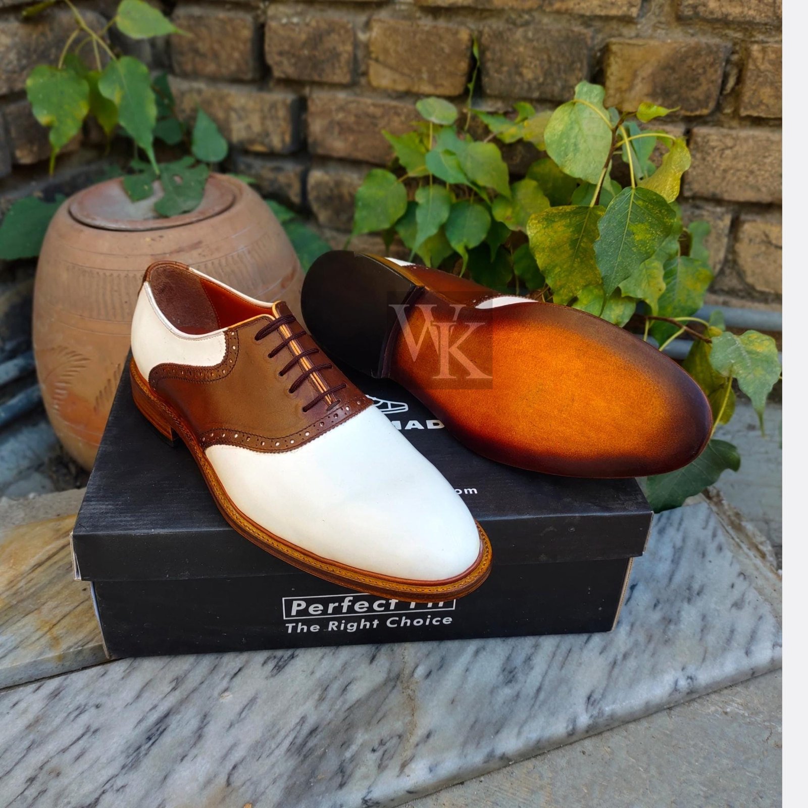 Handmade Two-Tone Leather Brogue Dress Shoes: Goodyear Welted