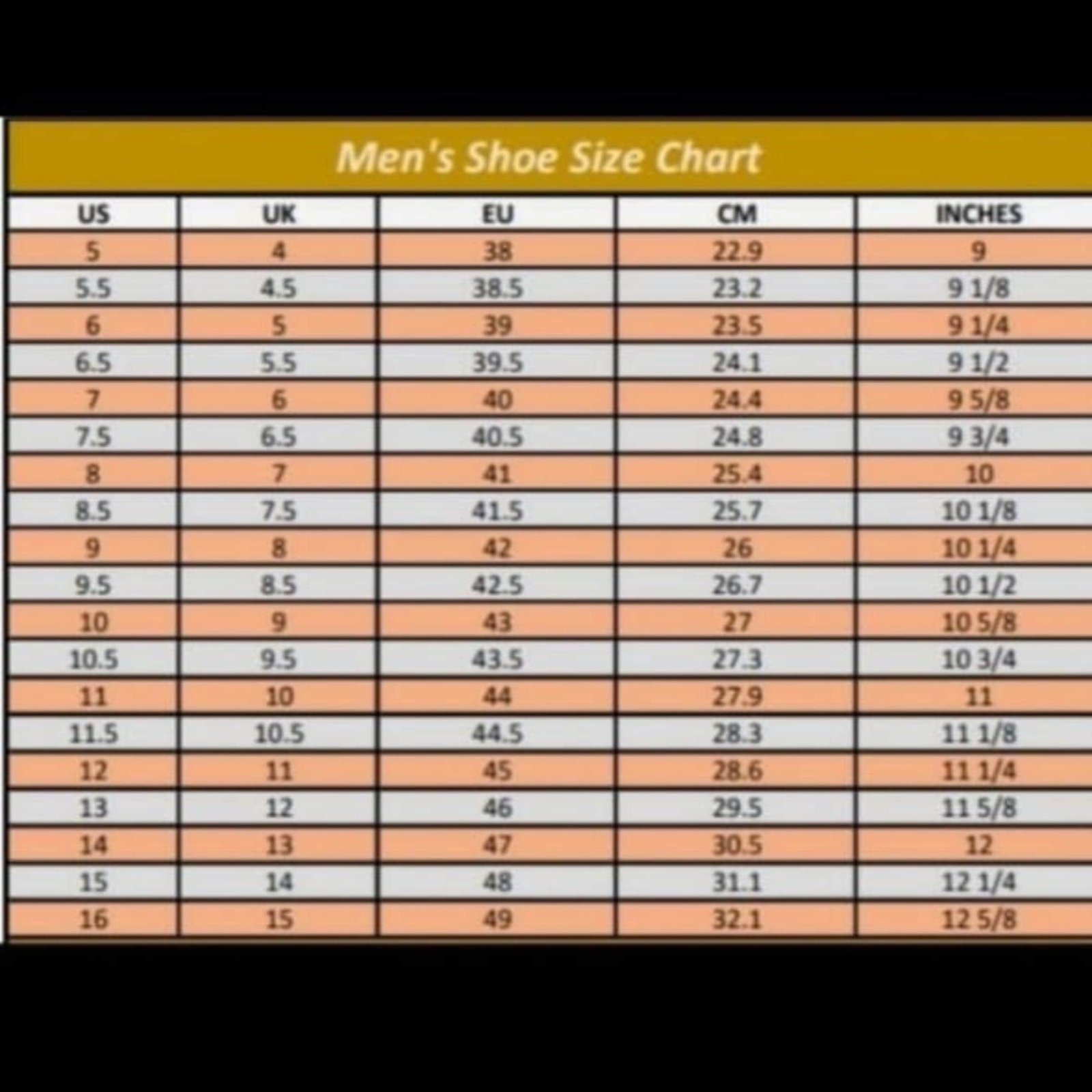 5 US men's ,5.5 US men's ,6 US men's ,6.5 US men's ,7 US men's ,7.5 US men's ,8 US men's ,8.5 US men's ,9 US men's ,9.5 US men's ,10 US men's ,10.5 US men's ,11 US men's ,11.5 US men's ,12 US men's ,12.5 US men's ,13 US men's ,13.5 US men's ,14 US men's ,14.5 US men's ,15 US men's ,15.5 US men's ,16 US men's ,Custom Made US men's |