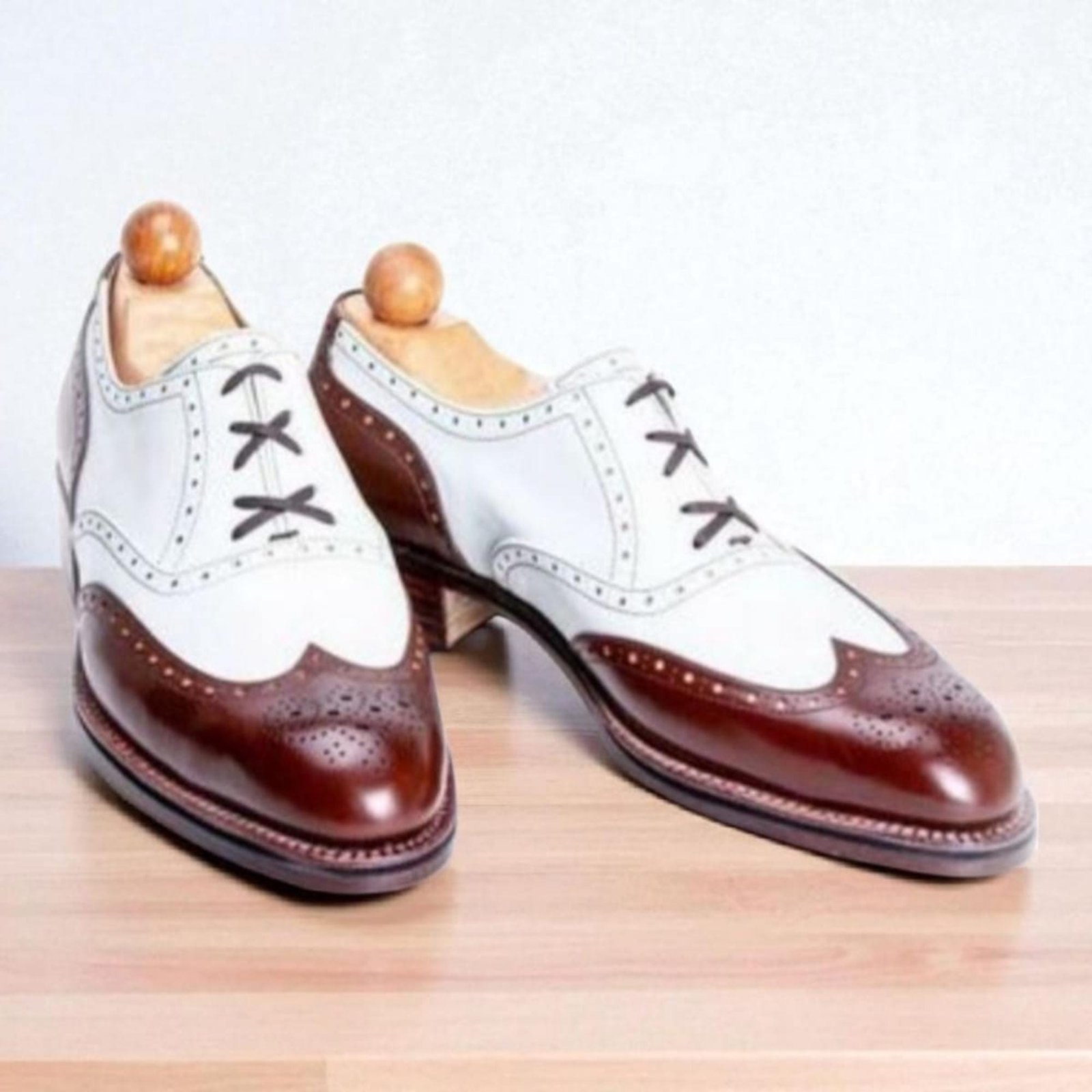 Handmade Two-Tone Leather Wingtip Oxford Brogue Shoes