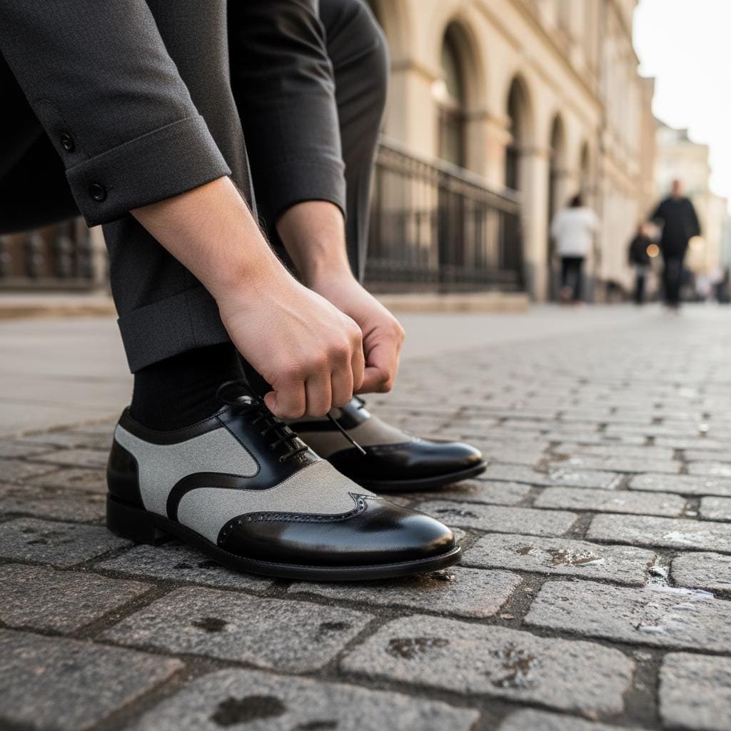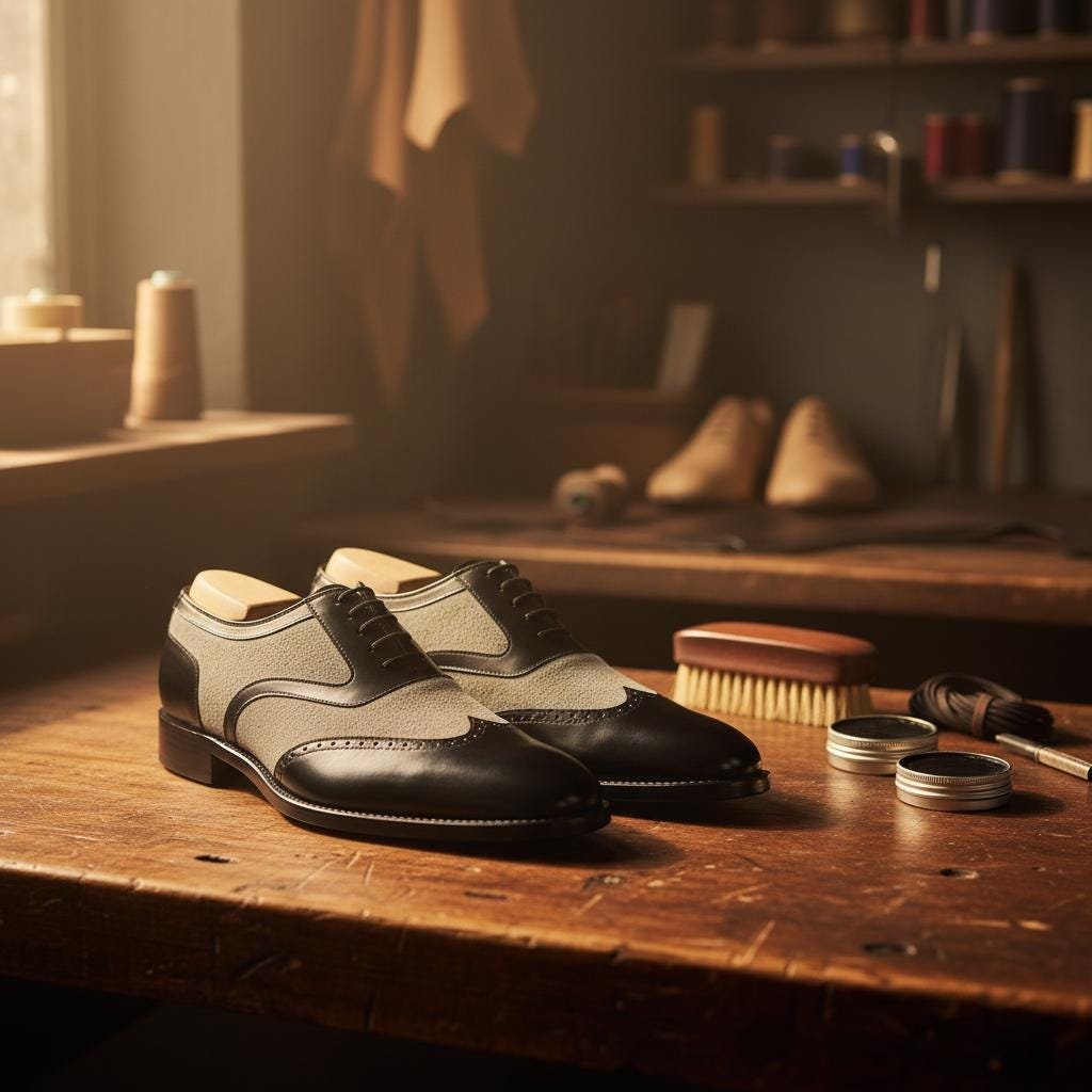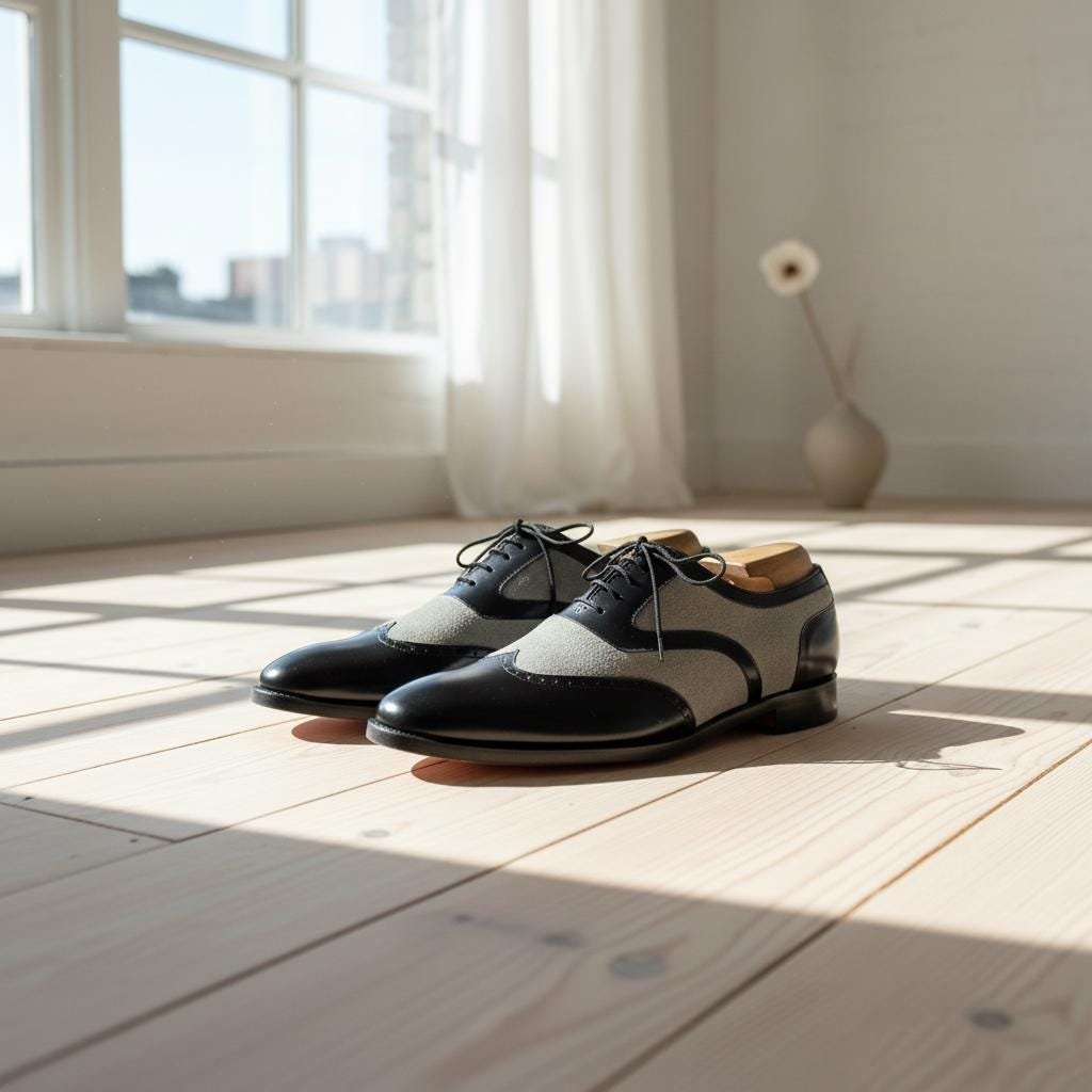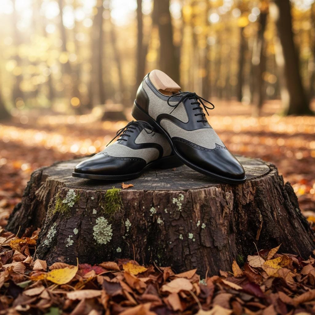 ⚪ 𝗛𝗔𝗡𝗗𝗠𝗔𝗗𝗘 𝗧𝗪𝗢-𝗧𝗢𝗡𝗘 𝗦𝗣𝗘𝗖𝗧𝗔𝗧𝗢𝗥 𝗦𝗛𝗢𝗘𝗦 – 𝗣𝗥𝗘𝗠𝗜𝗨𝗠 𝗟𝗘𝗔𝗧𝗛𝗘𝗥 & 𝗦𝗨𝗘𝗗𝗘
