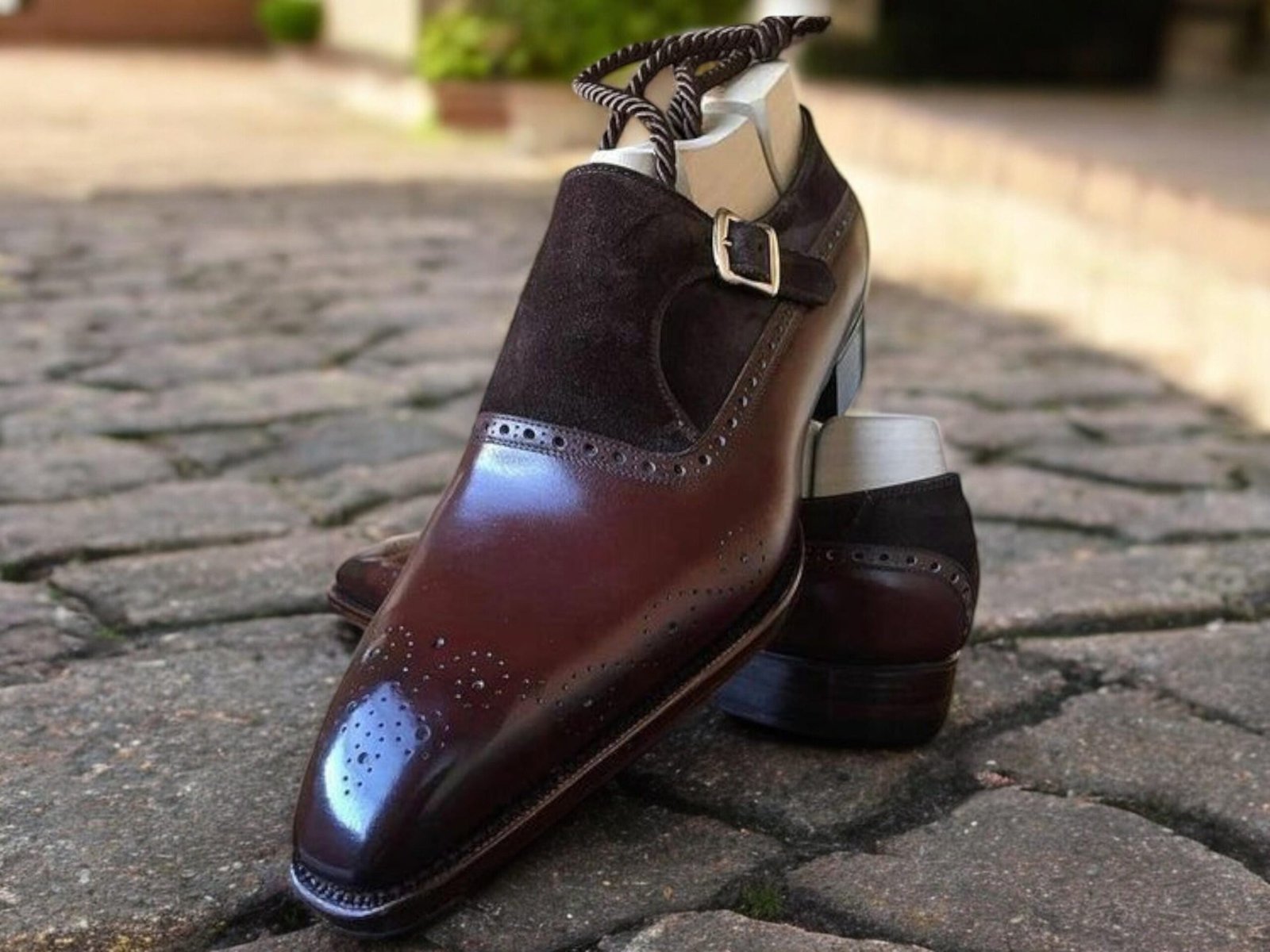 Handmade Two Tone Suede & Leather Monk Strap Shoes
