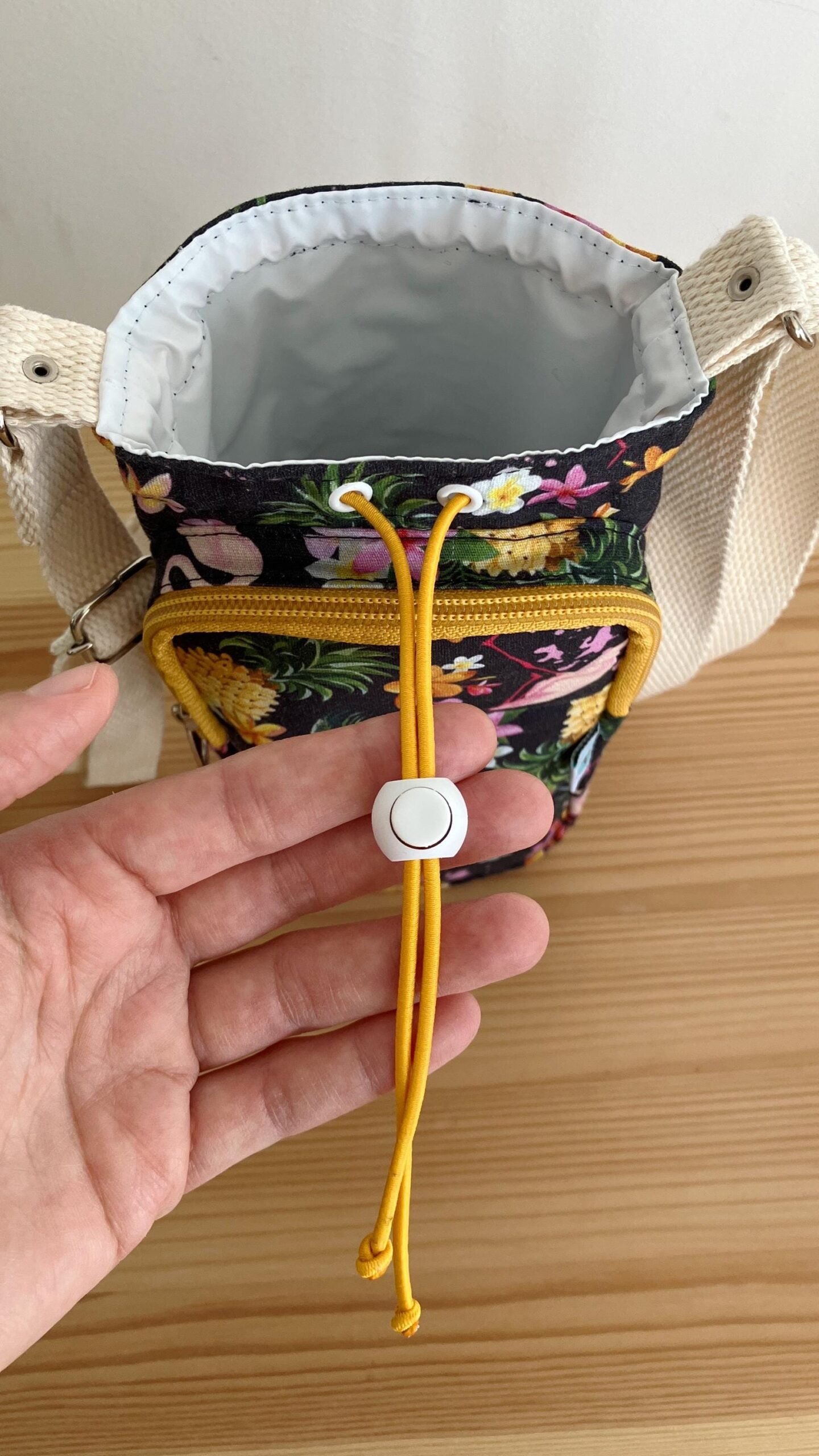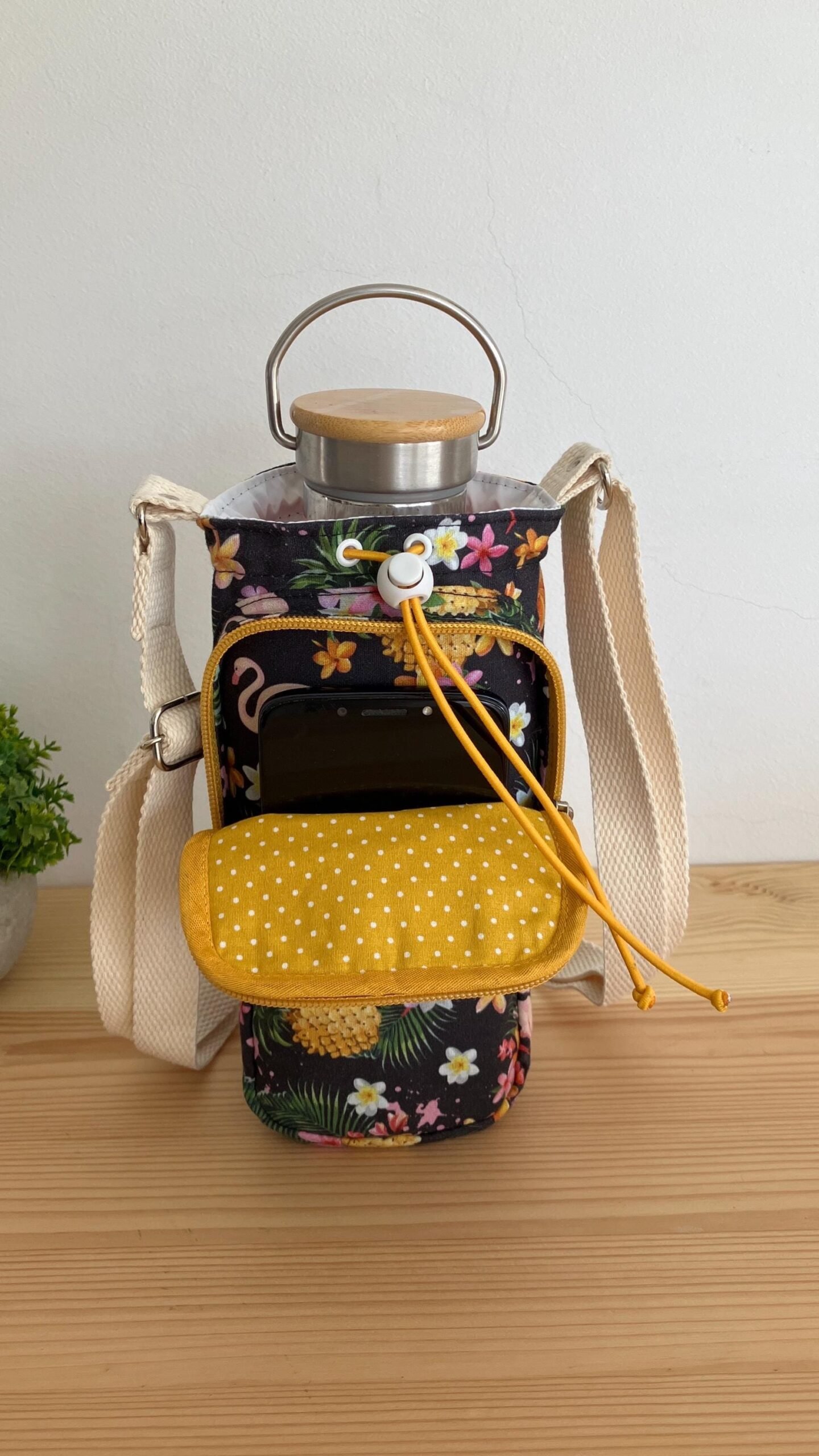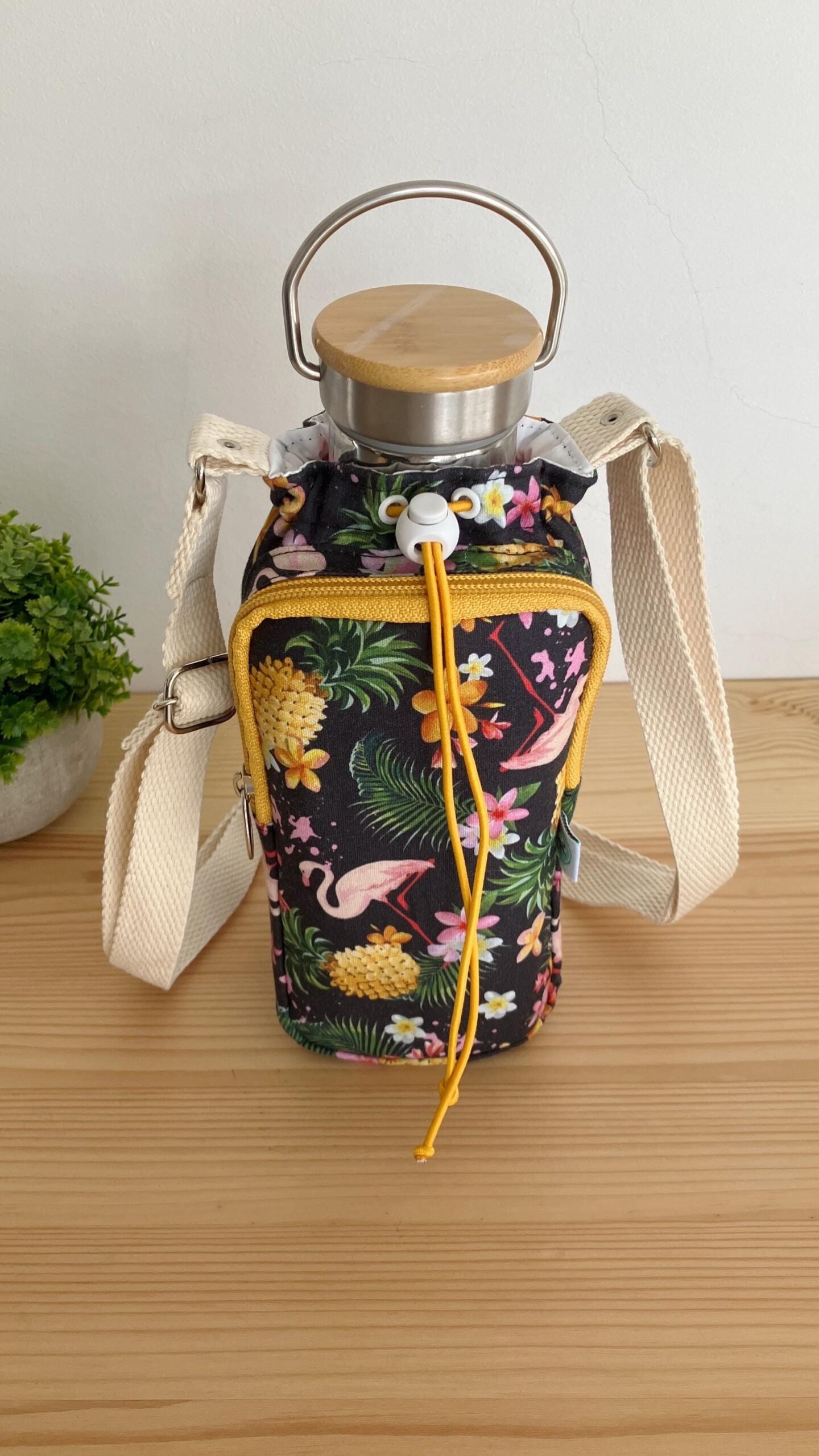 1 review for Handmade Water Bottle Cooler Bag: Floral Flamingo Print, Crossbody Strap