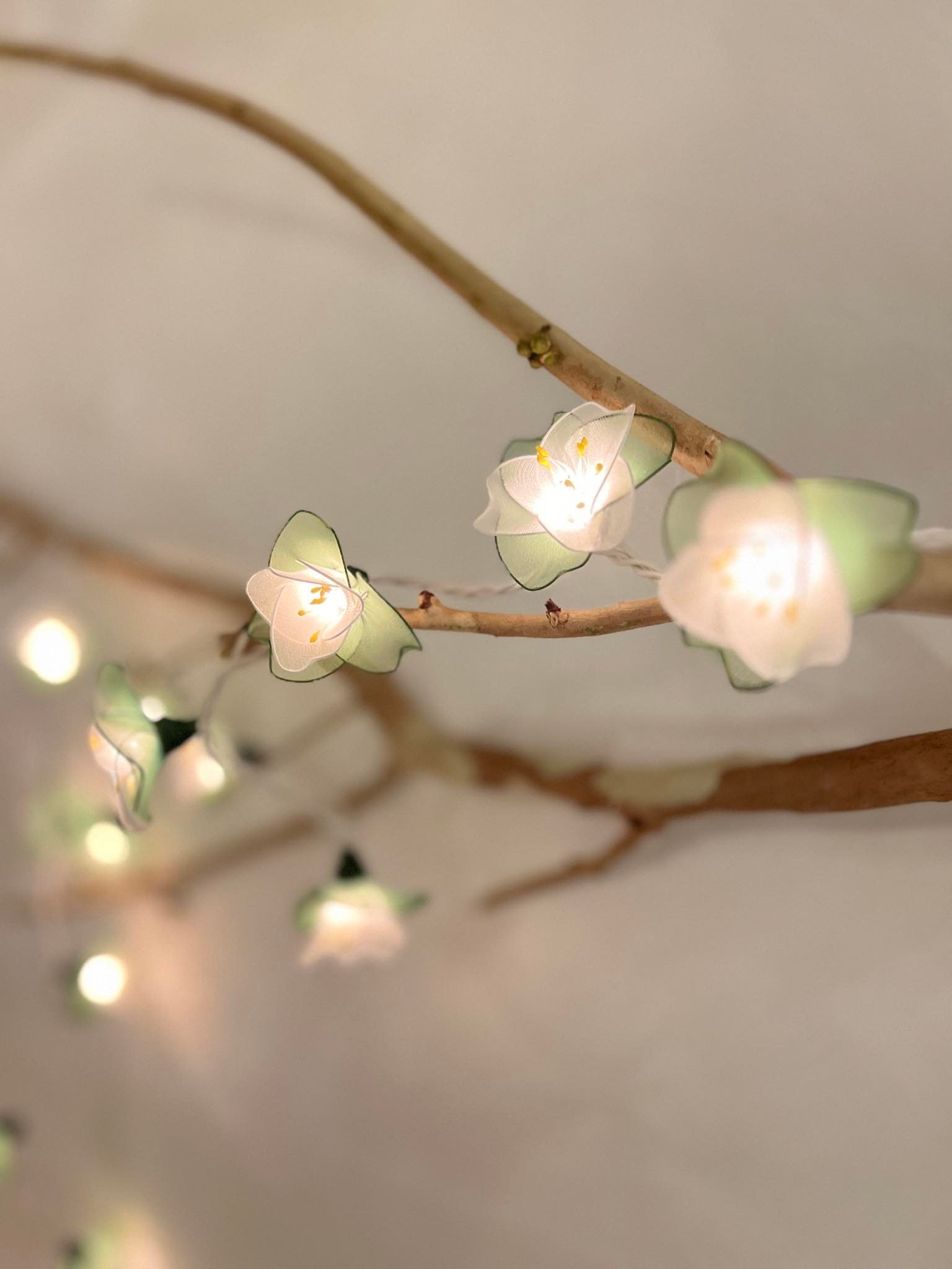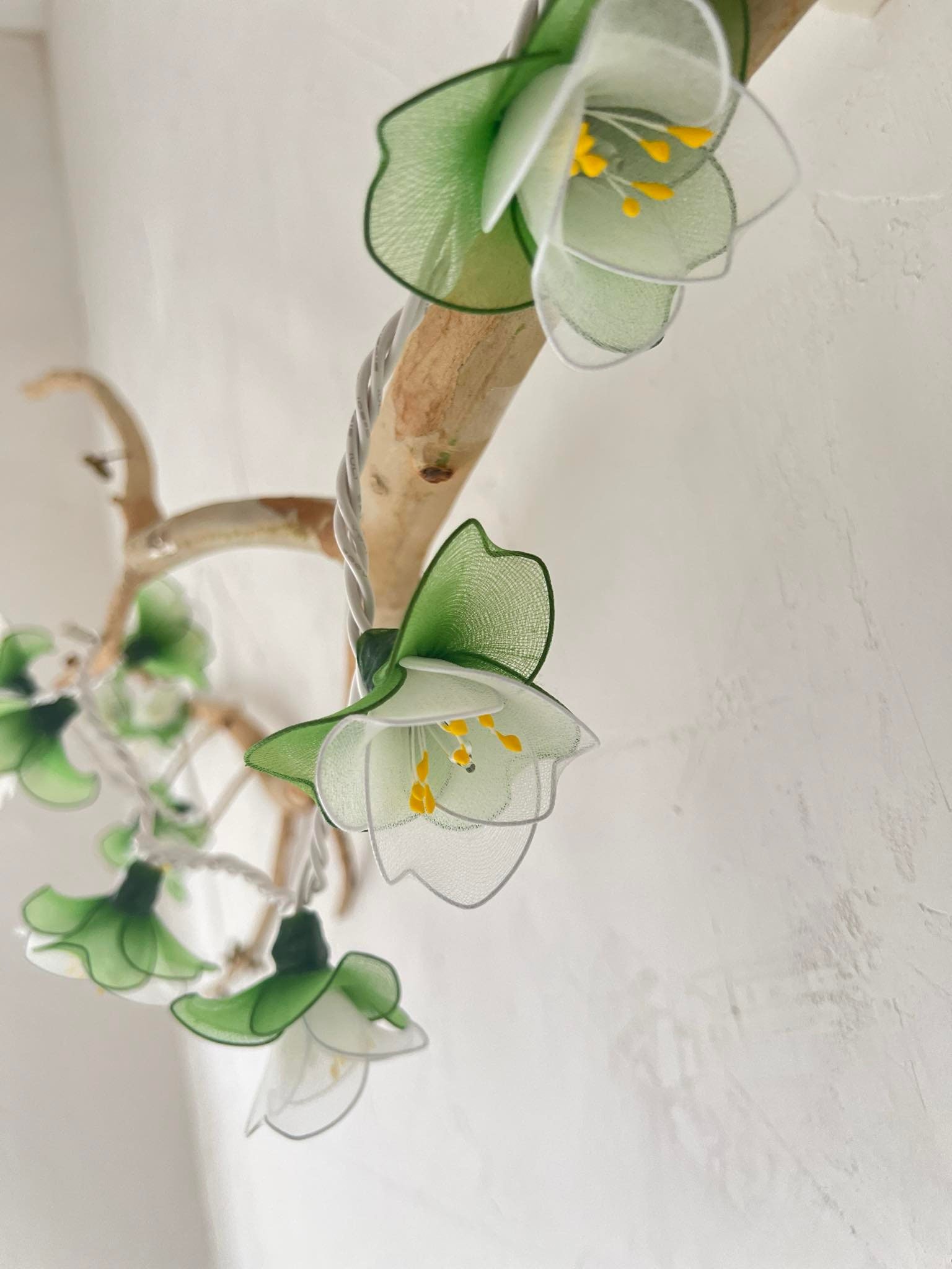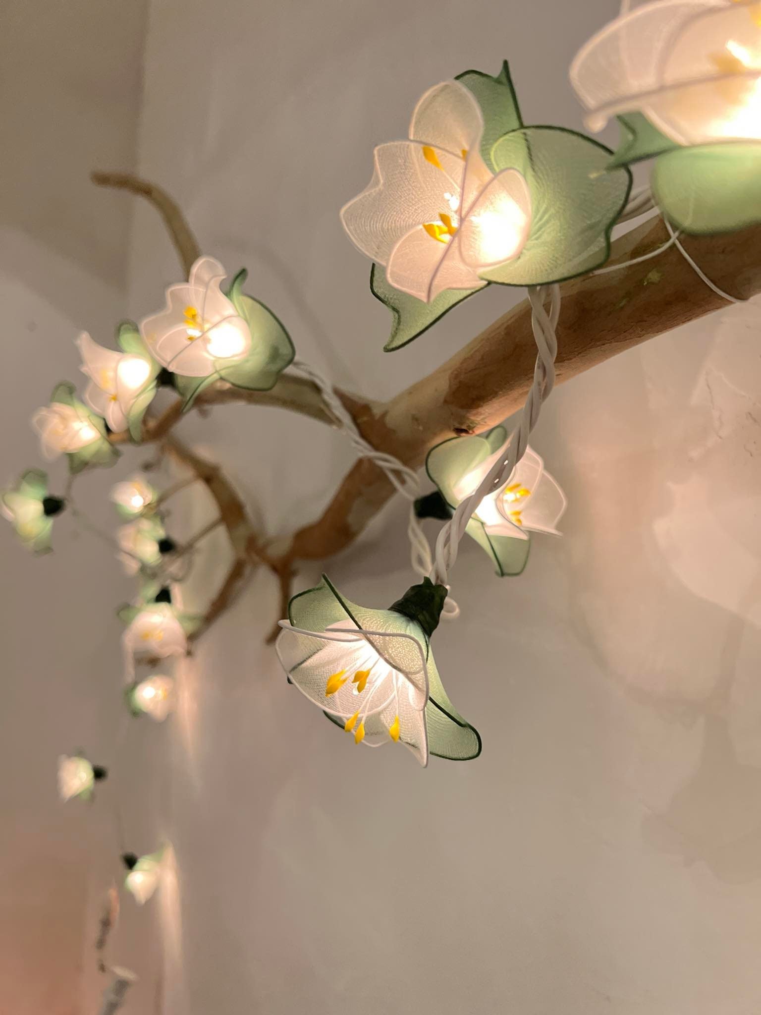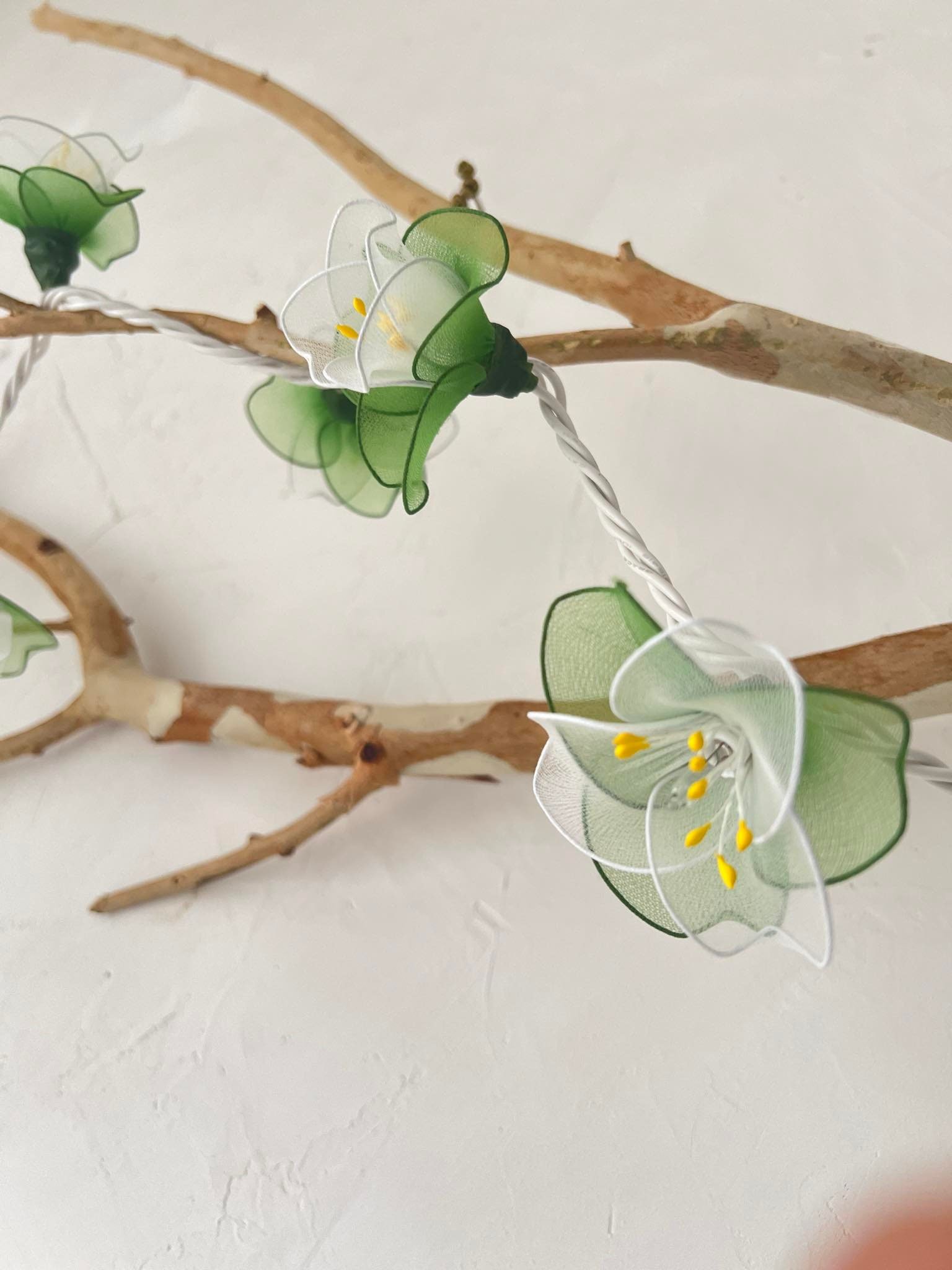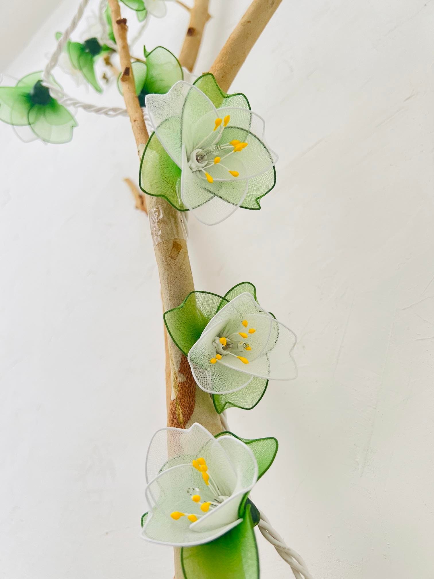 Handmade White & Green Flower String Lights: Patio Wedding Decoration 110 volts 35 bulbs