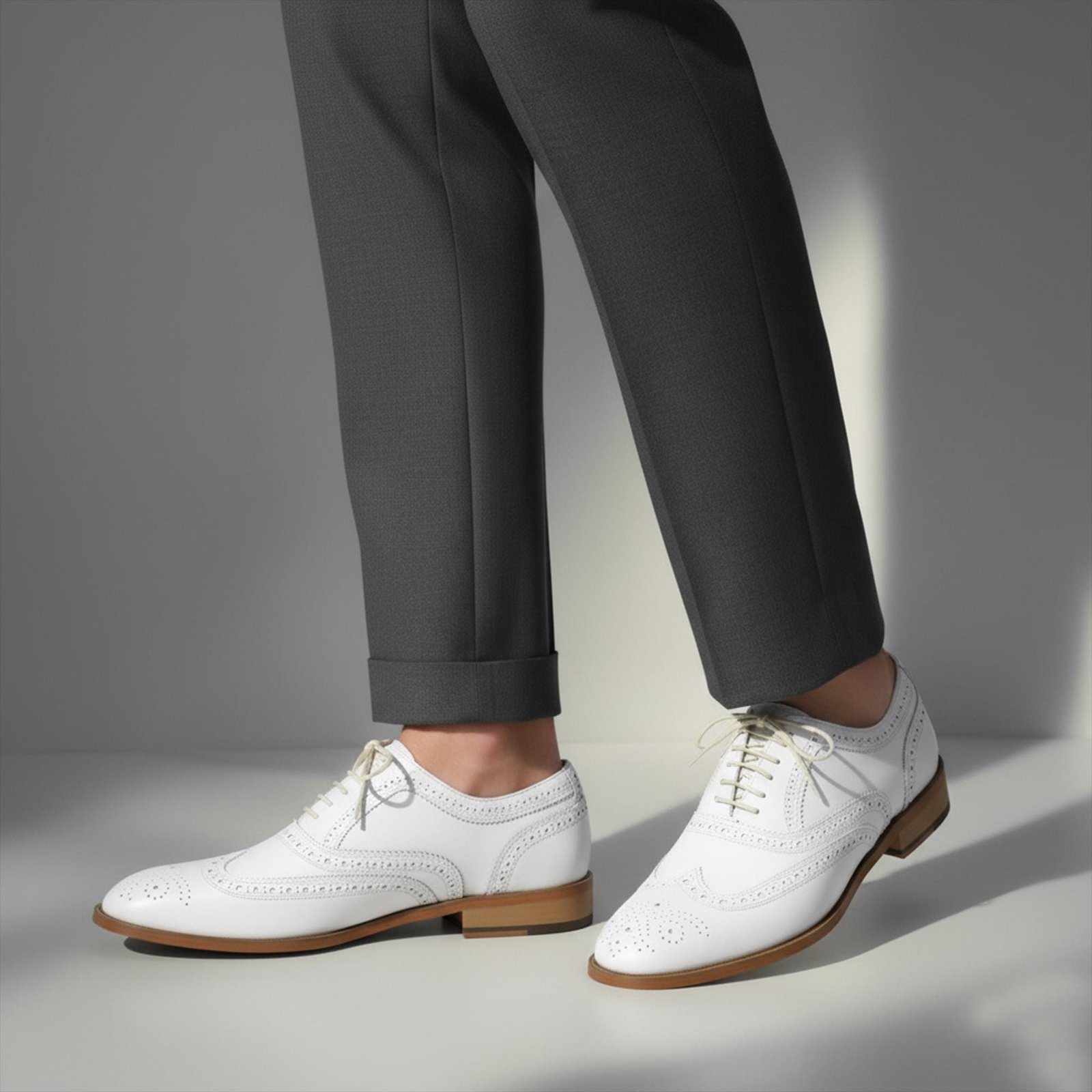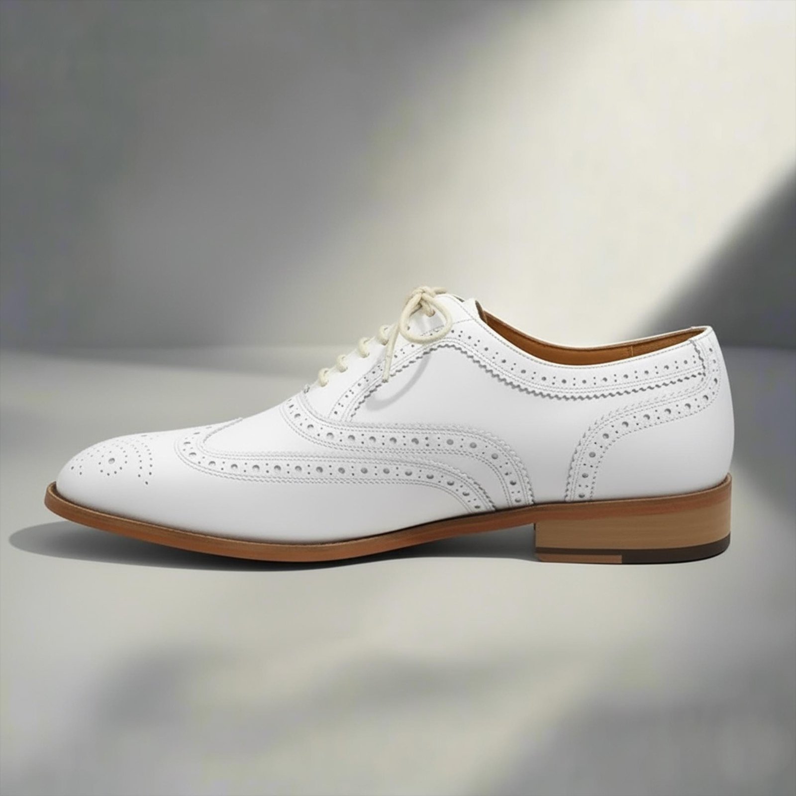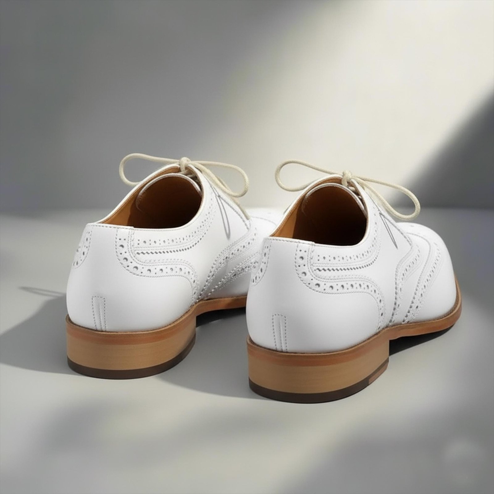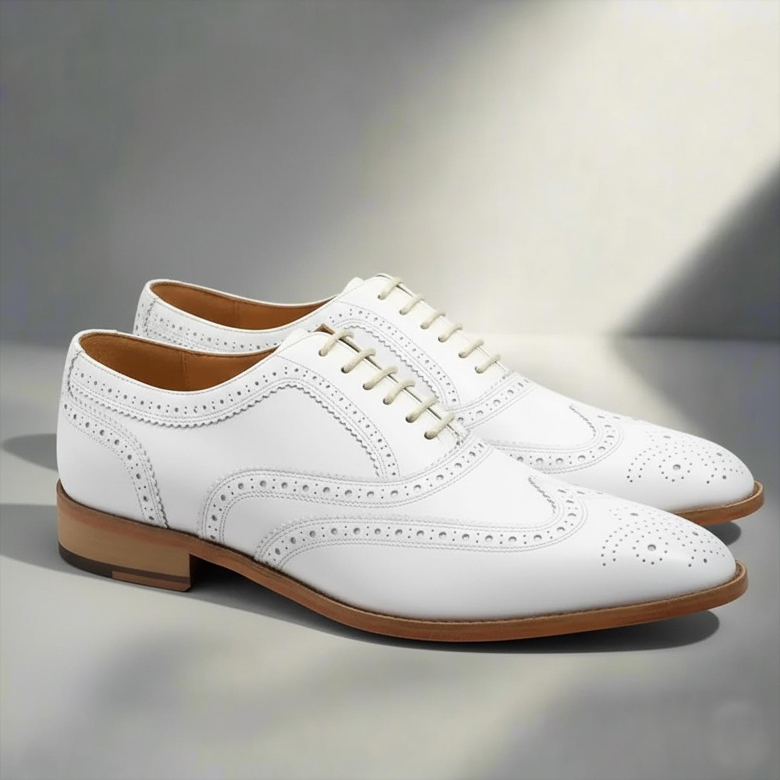Handmade White Leather Wholecut Brogue Oxford Shoes – Men’s Lace‑Up Dress Shoes