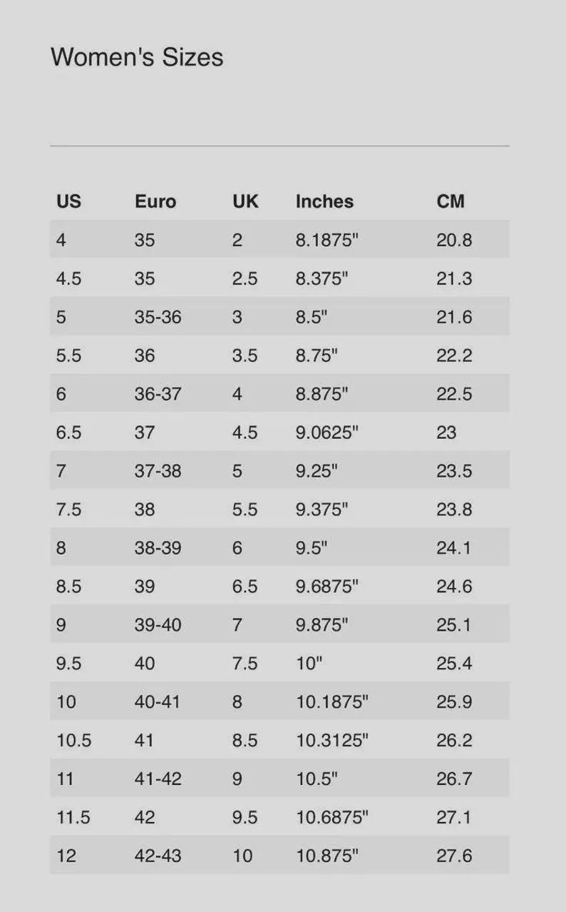3 US women's ,3.5 US women's ,4 US women's ,4.5 US women's ,5 US women's ,5.5 US women's ,6 US women's ,6.5 US women's ,7 US women's ,7.5 US women's ,8 US women's ,8.5 US women's ,9 US women's ,9.5 US women's ,10 US women's ,10.5 US women's ,11 US women's ,11.5 US women's ,12 US women's |