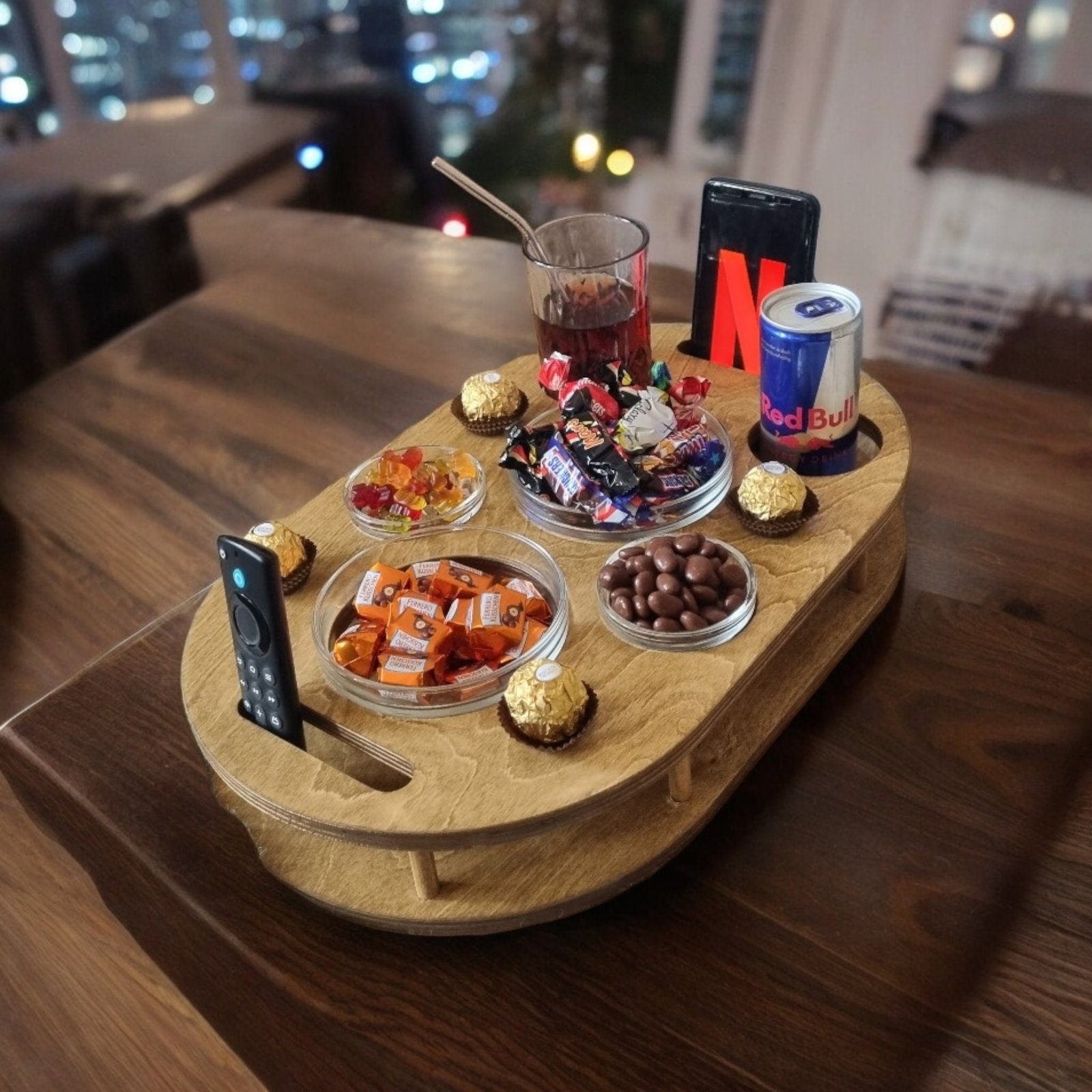 Handmade wooden coffee bar with 4 glass bowls | Unique snack bar | Customizable | Camping | Tray