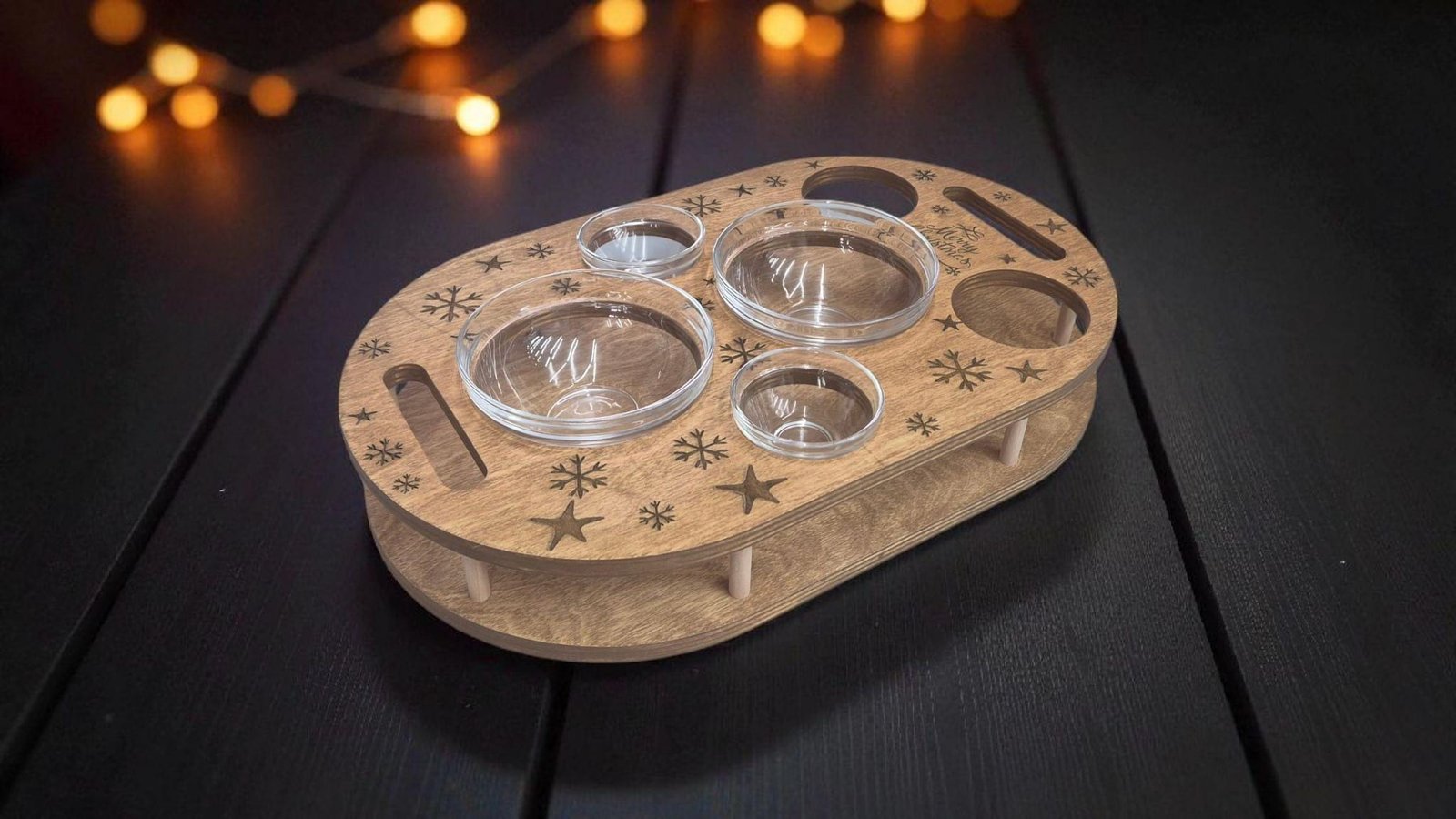 Handmade wooden coffee bar with 4 glass bowls | Unique snack bar | Customizable | Camping | Tray
