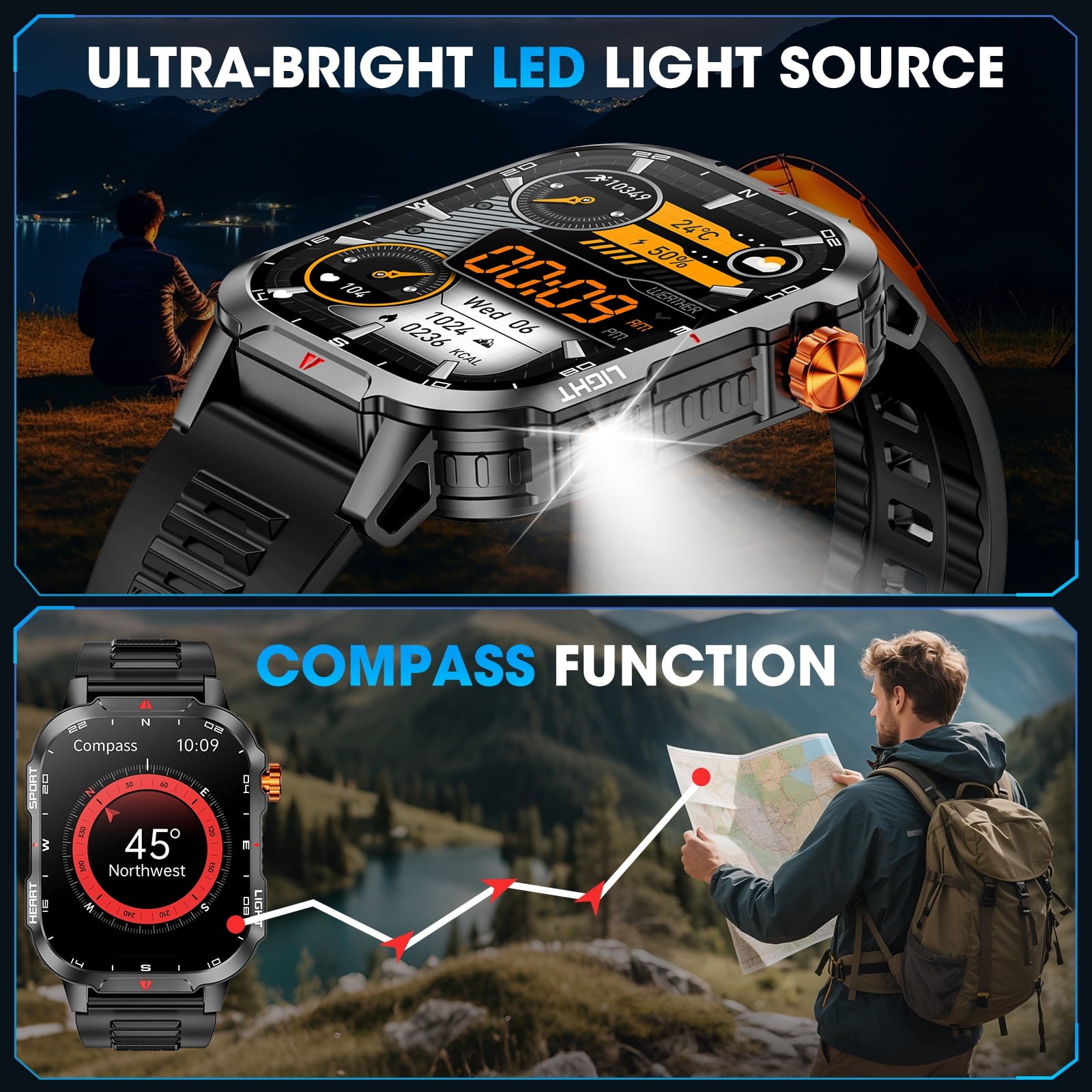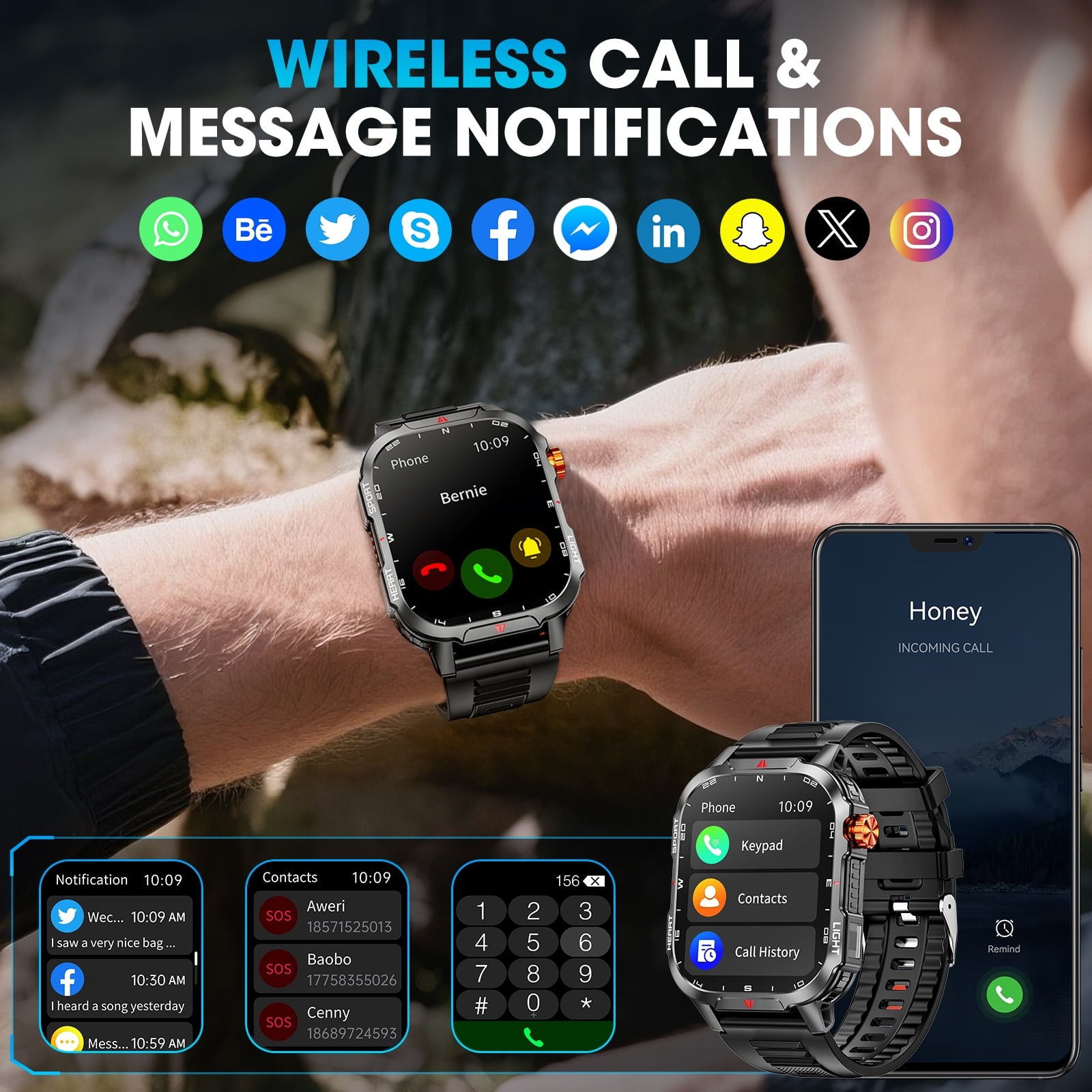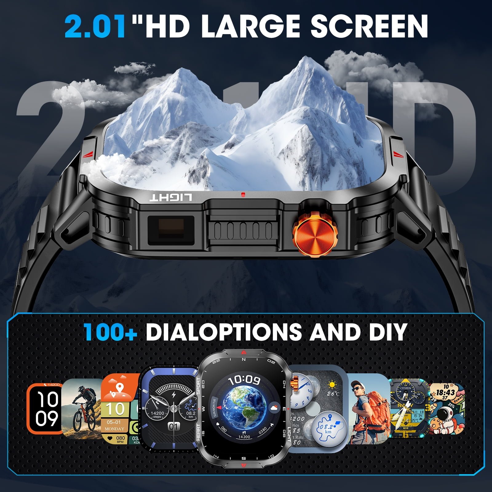 Rugged and Durable: This Haulvean smart watches for men comes with a 2.01-inch HD screen. The composite case makes this smartwatch waterproof, scratchproof, dustproof and rugged, making it a reliable companion for indoor and outdoor adventures.