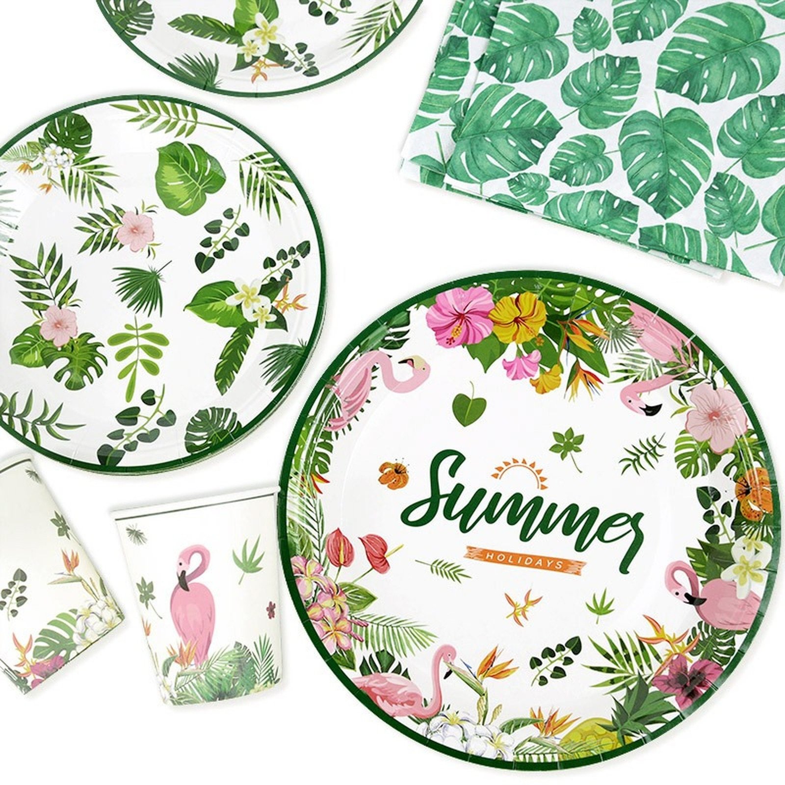 Hawaiian Luau Party Tableware Birthday Decoration Disposable Dinnerware Tropical Aloha Summer Flamingo Cup Plate Wedding Party Supplies