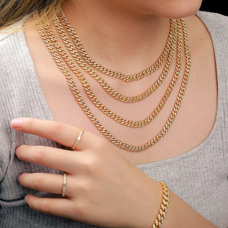 Hip Hop Luxury 6/8mm Cubic Zirconia Necklace Jewelry Women Iced Out Miami Prong 1 Row Cuban Link Chain Necklace