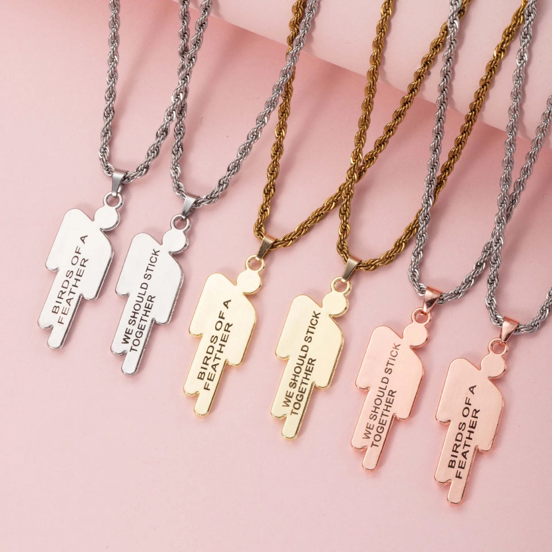 Hip Hop Stainless Steel double tilted head small character engraved pendant Necklace Street Fashion Couple Necklace gift