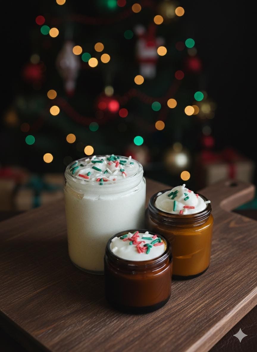 Holiday Line 2025 Tallow Creams | Christmas Whipped Tallow Moisturizer | Natural Skincare | Candy Cane, Snowfall, Cozy Cabin, Hot Chocolate