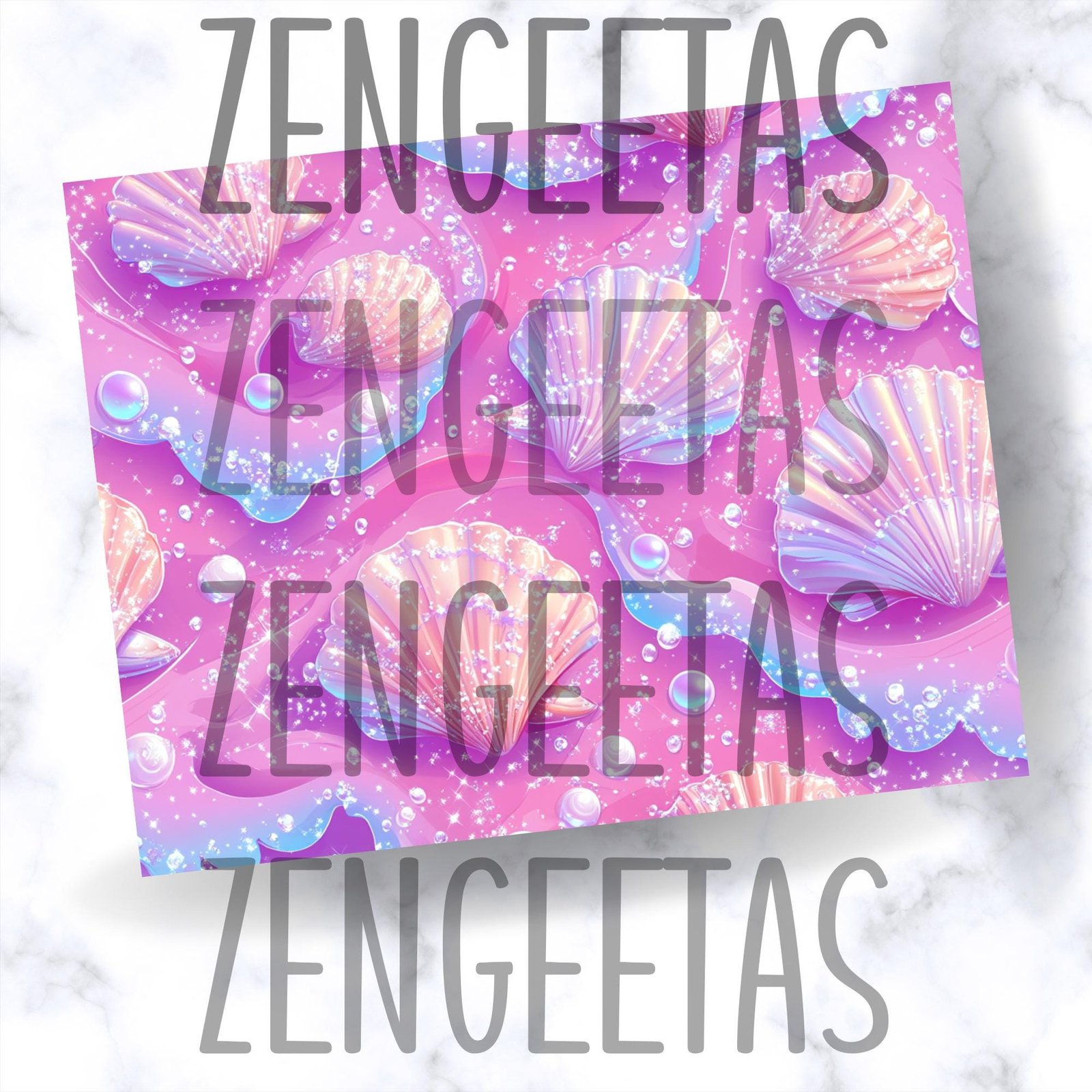 Holographic Pastel Beach, 20 oz Skinny Tumbler Sublimation Design Wrap, Digital Download, Straight Design PNG, Seashell, and Bubbles, 3D
