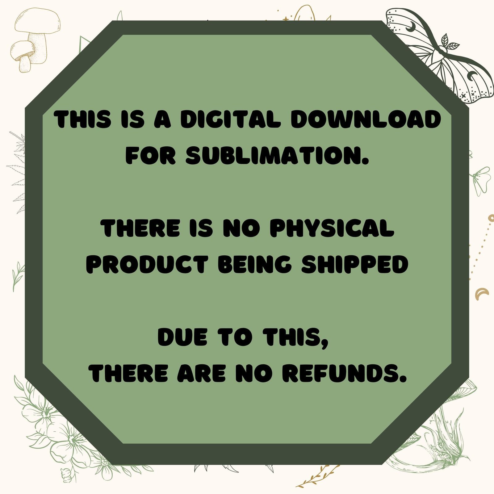🌟 Please note that these designs are digital downloads intended exclusively for sublimation purposes. They are not compatible with SVG or cutting files. 🚫 Rest assured, you will not receive a physical product; instead, you’ll have the opportunity to create your own masterpiece with our high-quality PNG files, which can be resized without compromising on quality. 🎨