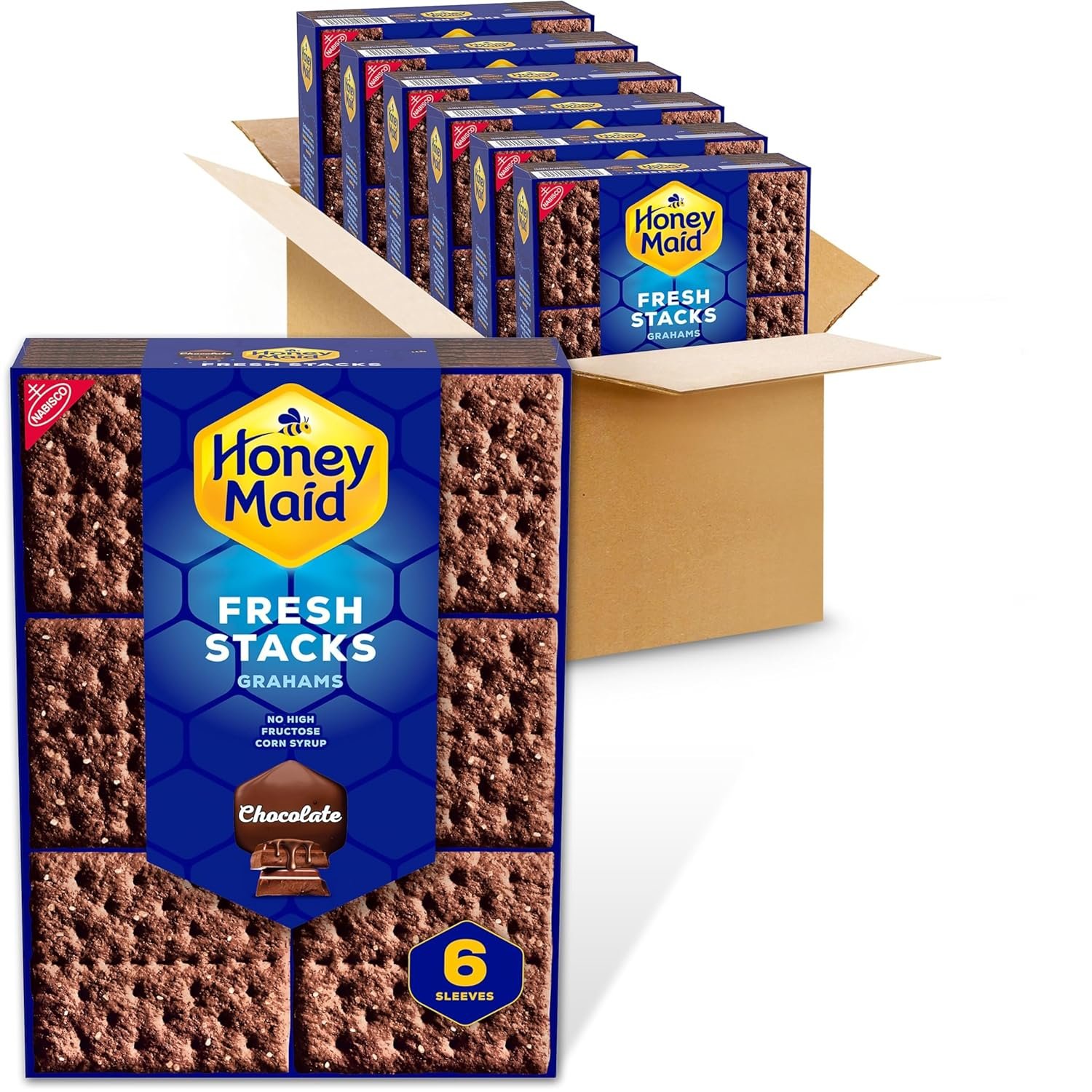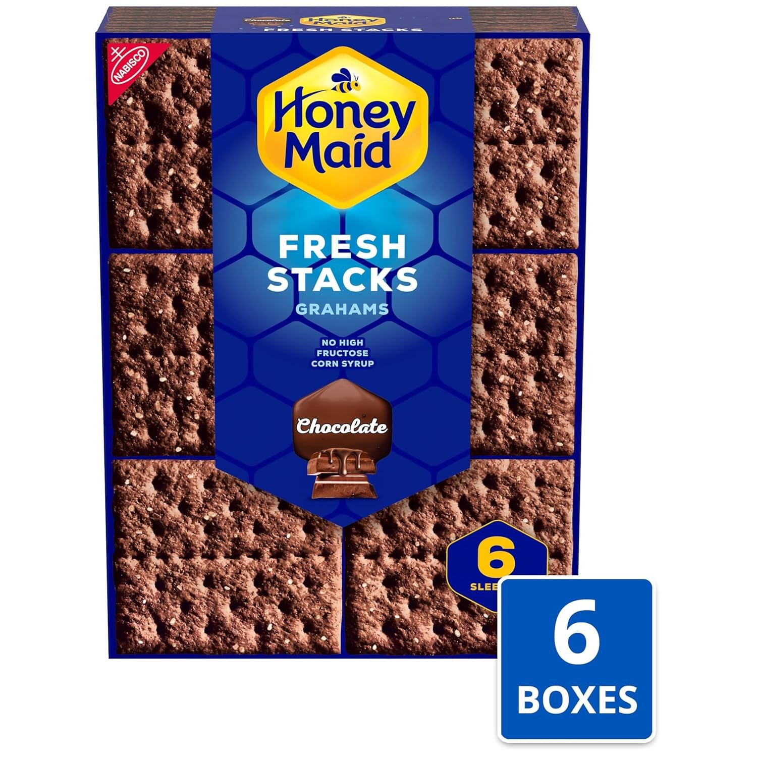 - Six 12.2 oz boxes of HONEY MAID Chocolate Fresh Stacks Grahams, Chocolate Graham Crackers, 36 total fresh stacks