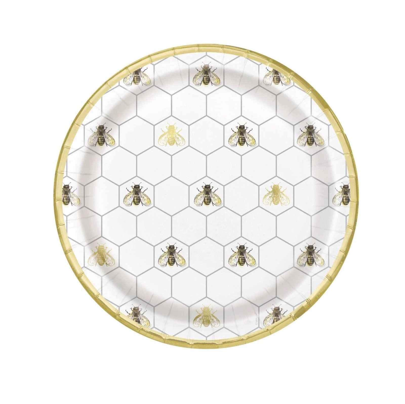 Honeycomb Bee Paper Plates 8ct – Bumble Bee Baby Shower, What Will it Bee Gender Reveal, Bee Birthday Decorations, Honey Bee Party Supplies