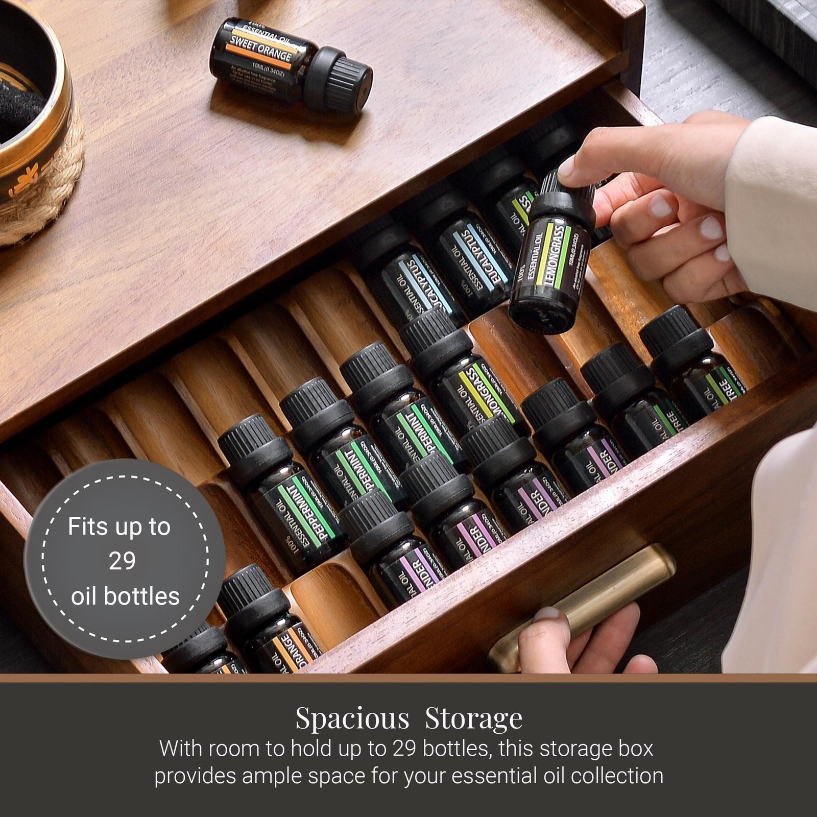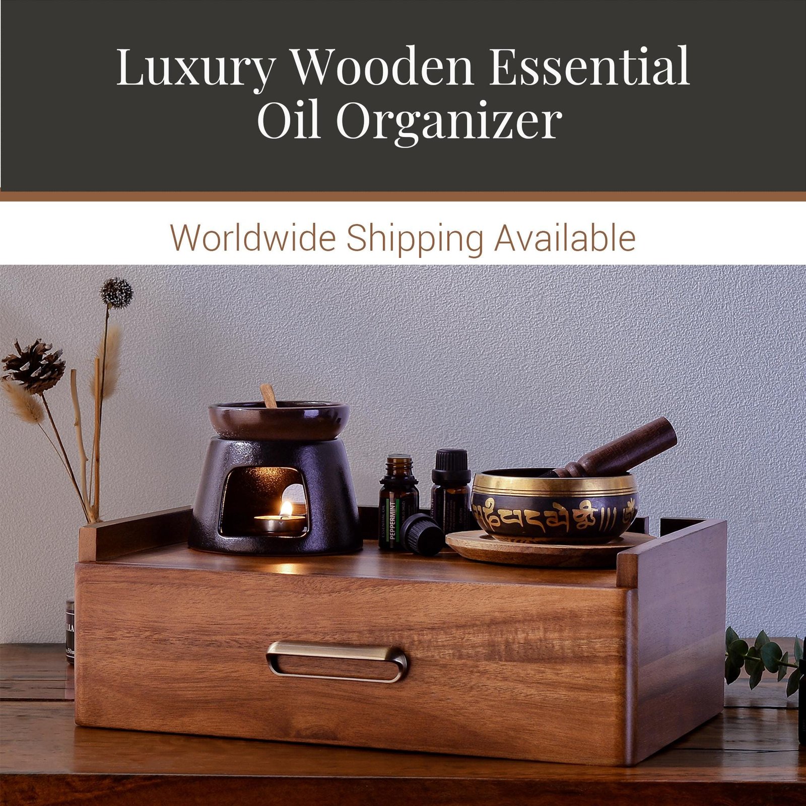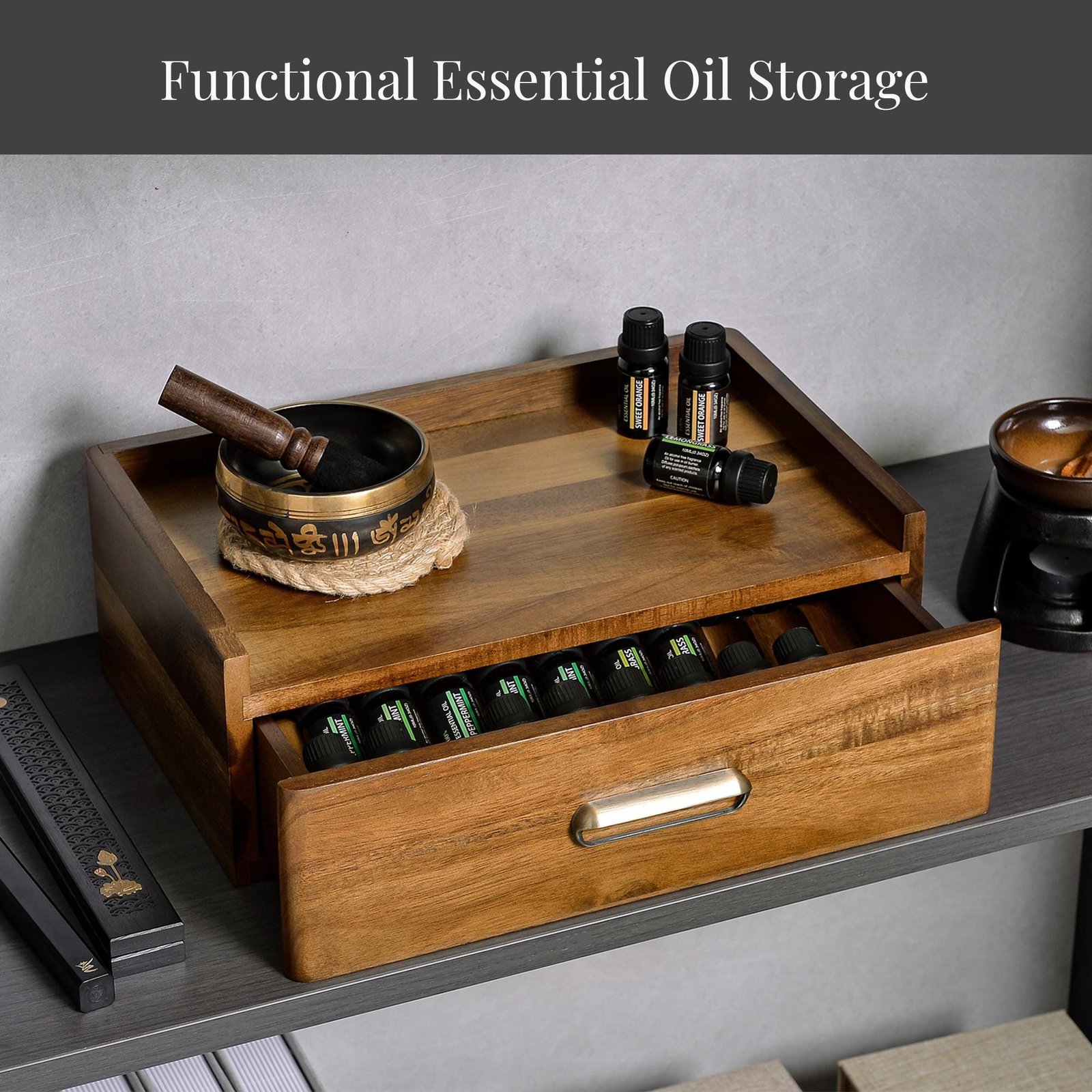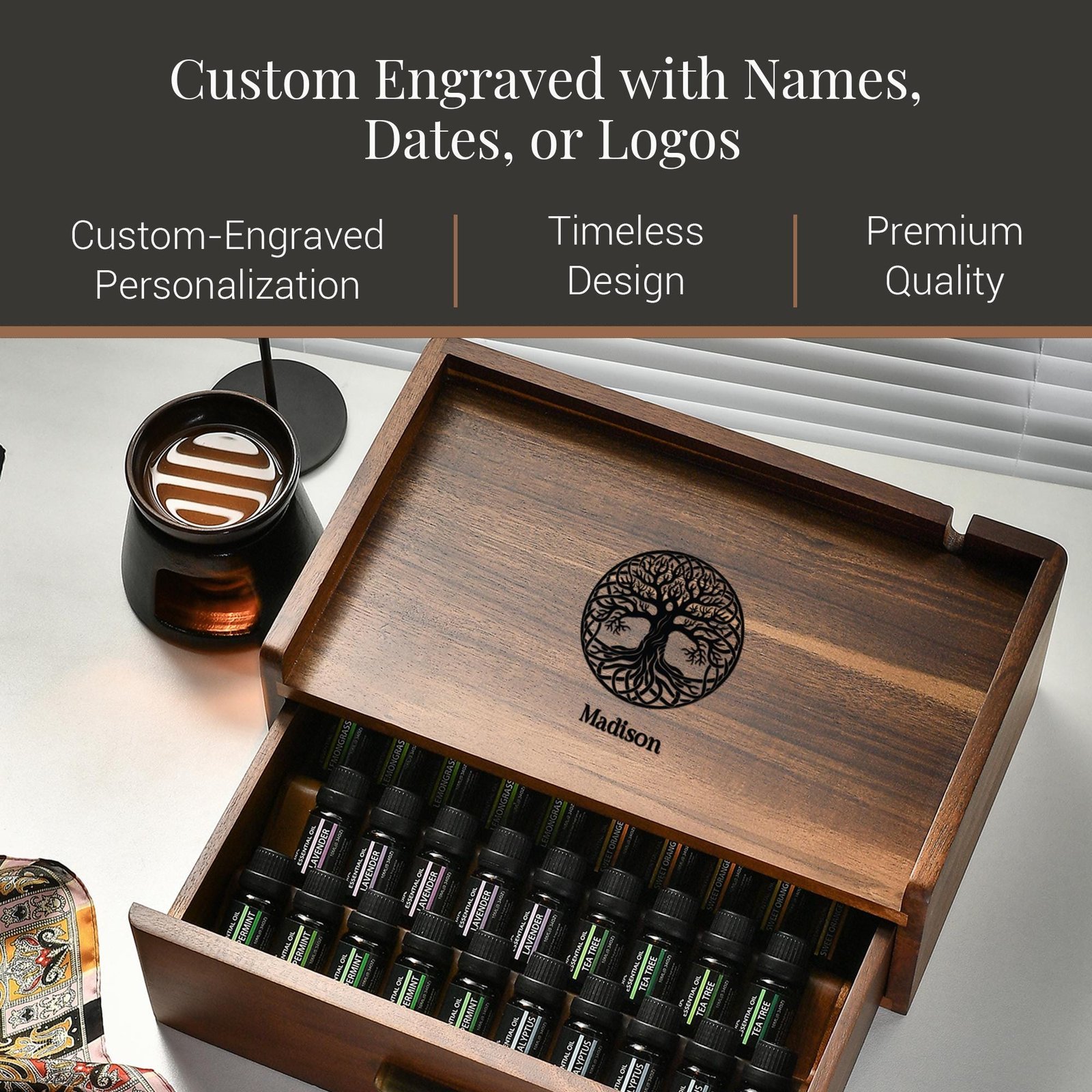 Housewarming Oil Storage Box Custom Acacia Wood Personalized Diffuser Organizer Engraved First Home Gift Essential Oil Storage for New House