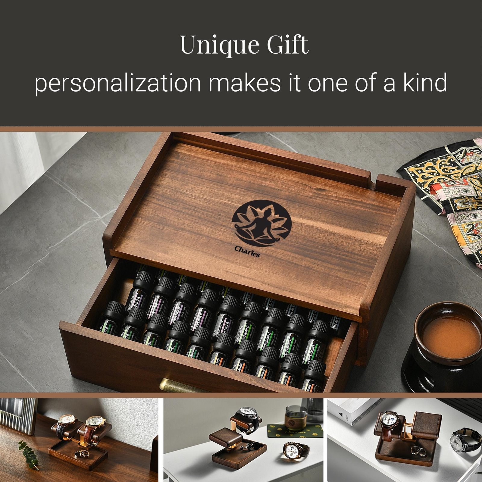 Be the first to review “Housewarming Oil Storage Box Custom Acacia Wood Personalized Diffuser Organizer Engraved First Home Gift Essential Oil Storage for New House” Cancel reply