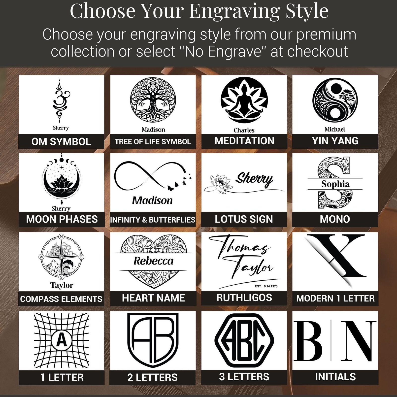 Add Card ,Add Gift Bag ,Add Gift Bag+Card ,No Gift Bag/No Card ,LOGO / CUSTOM DESIGN ,Om Symbol ,Tree of Life Symbol ,Meditation ,Yin Yang ,Moon Phases ,Infinity&Butterly ,Lotus Sign ,Mono ,Compass Elements ,Heart Name ,Ruthligos ,Modern 1 Letter ,Letter ,2 Letters ,3 Letters ,initials |
