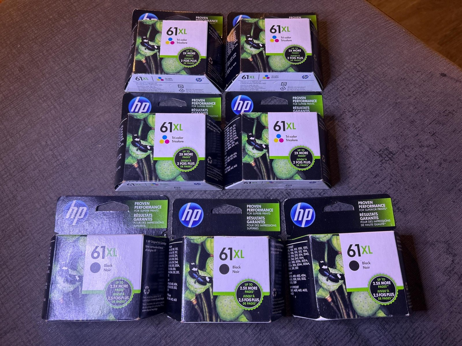 HP Ink 61 Black & Tri Color 7 Cartridges Factory Sealed Exp 2020